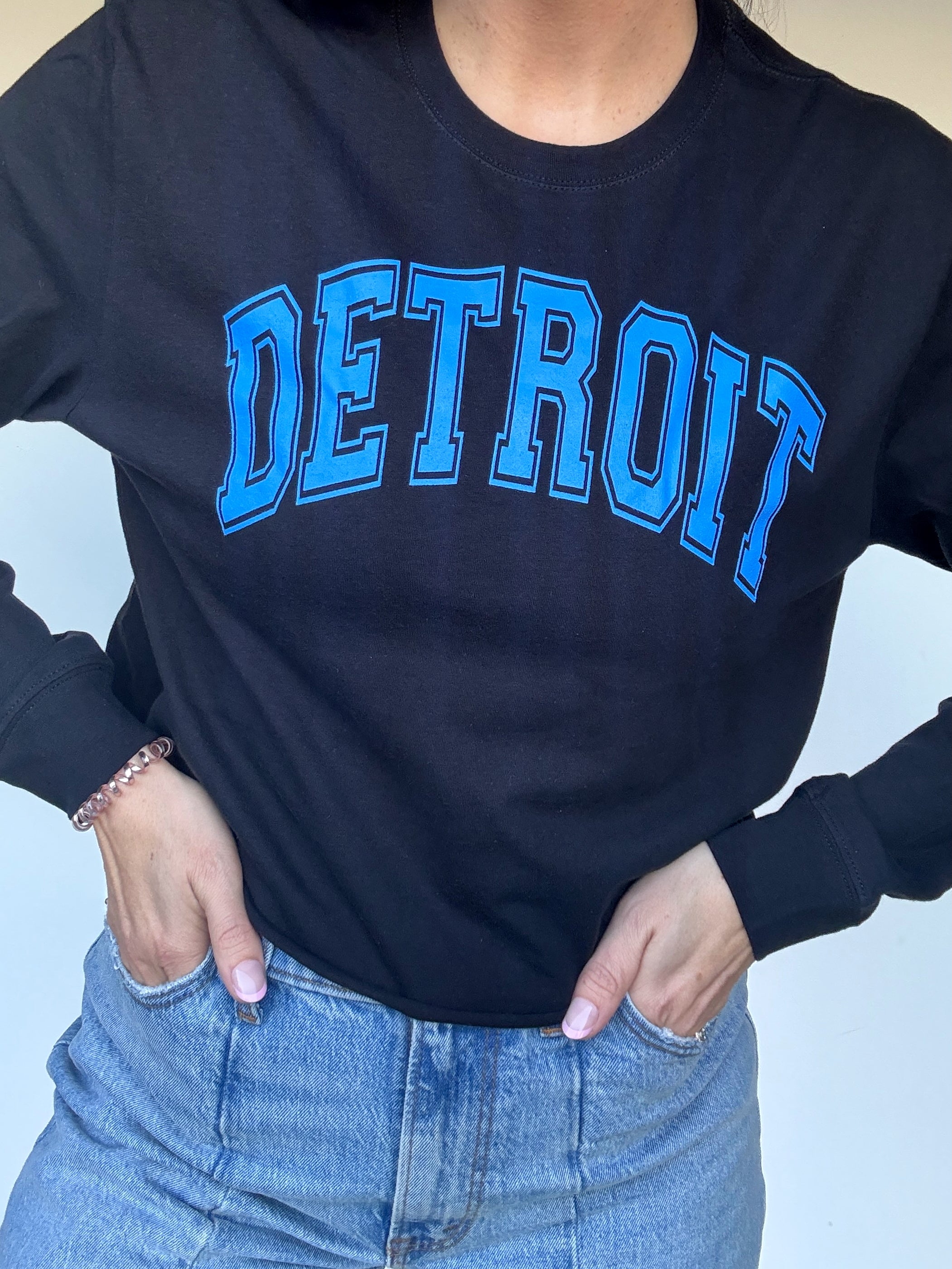 Detroit Cropped Long Sleeve Black + Blue Tee
