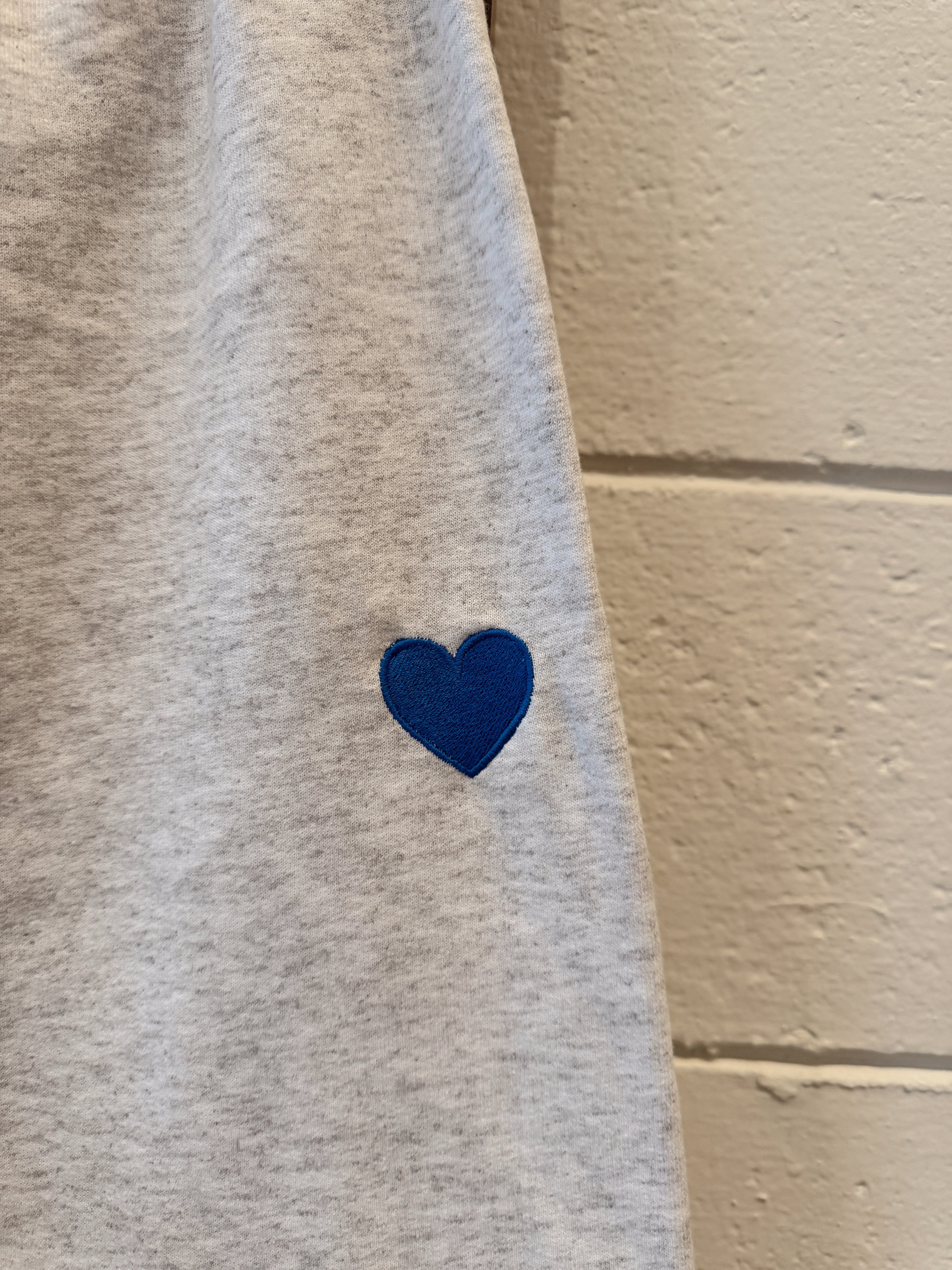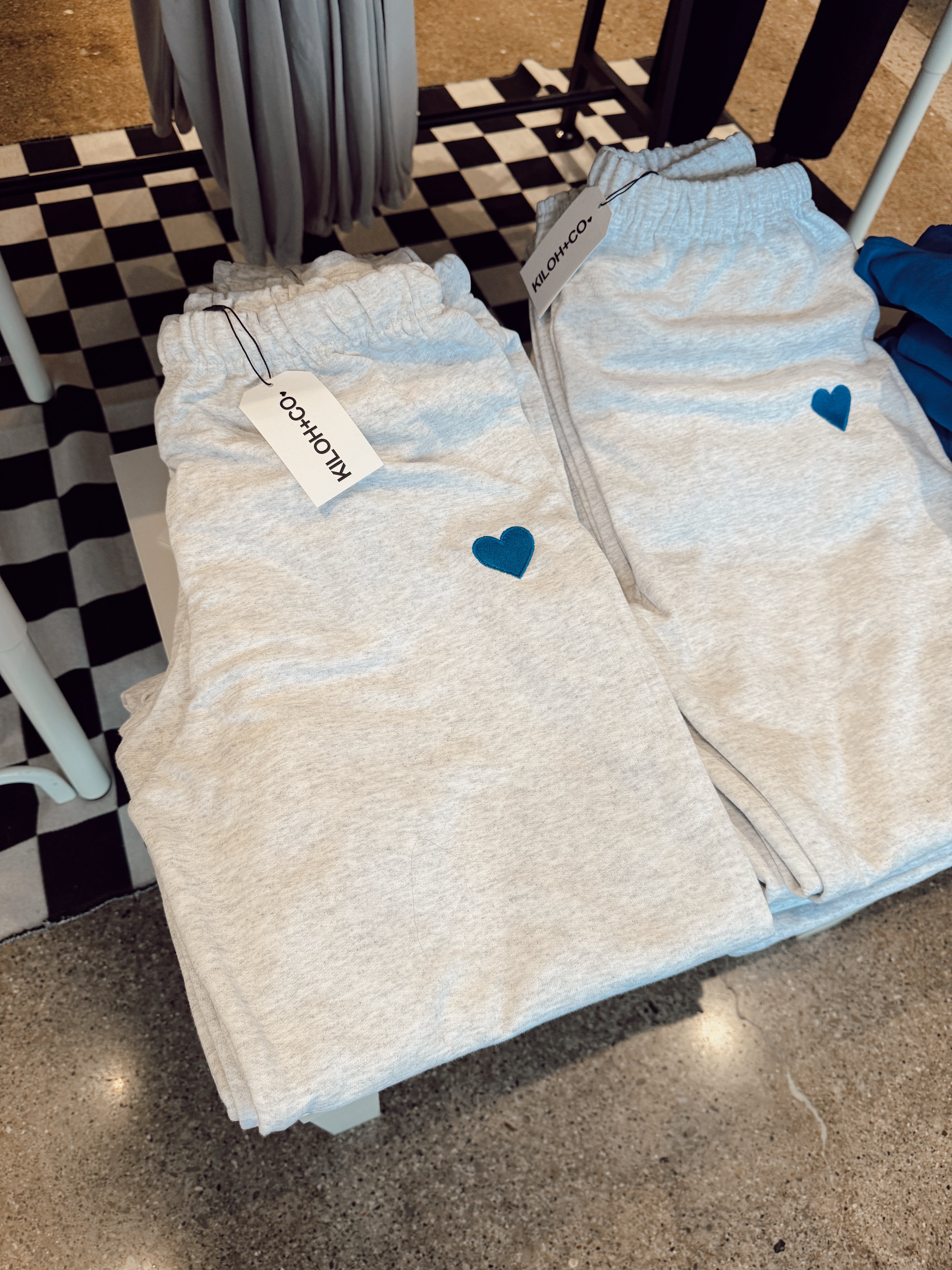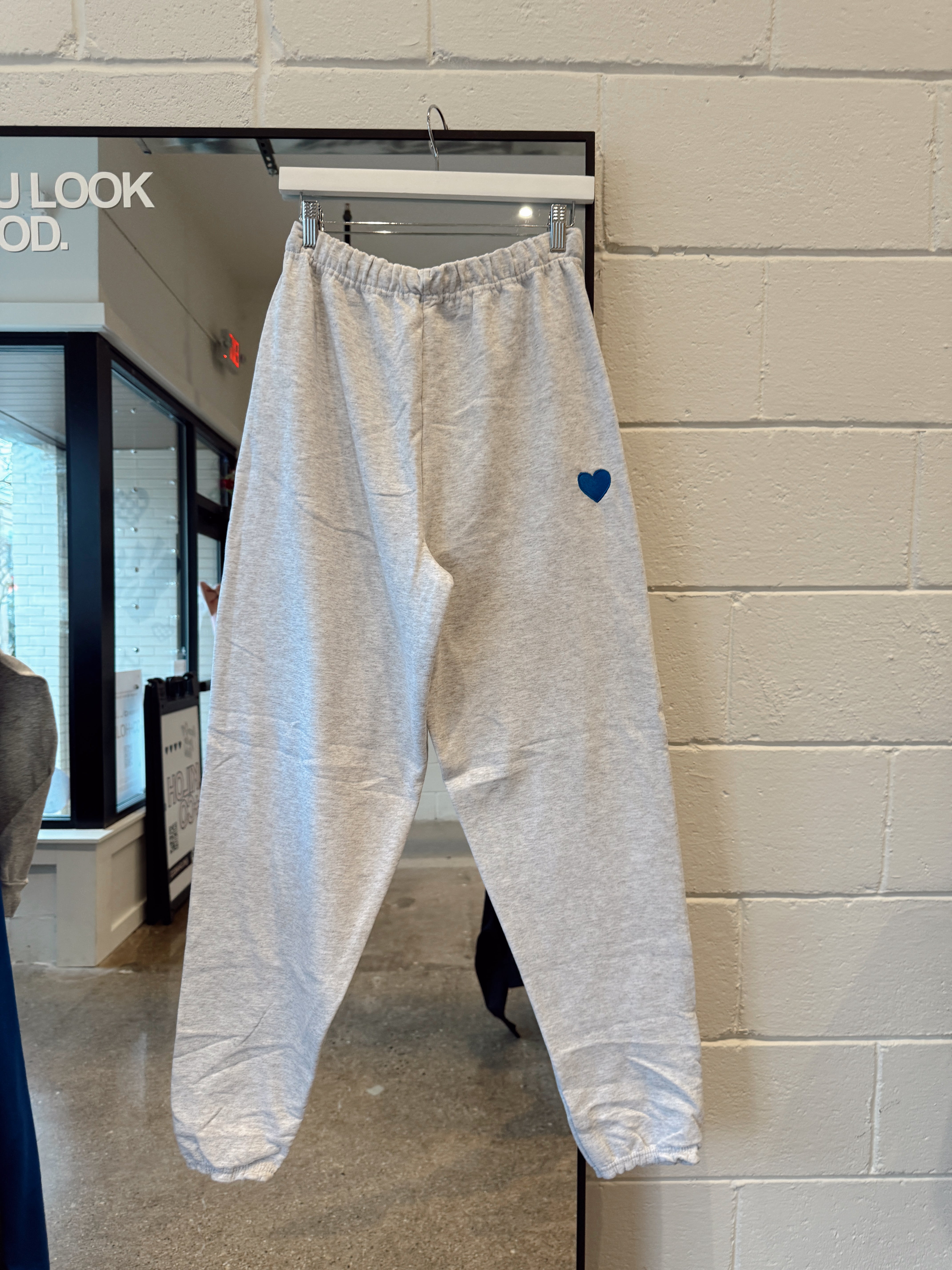 The joggers your wardrobe has been wanting and make it a matching set with our ash grey Detroit Crew! Embroidered blue heart on the leg.