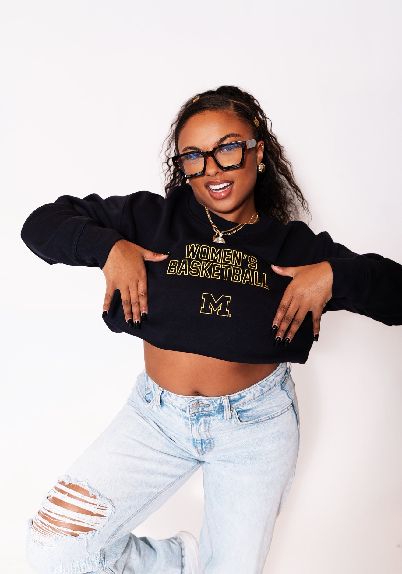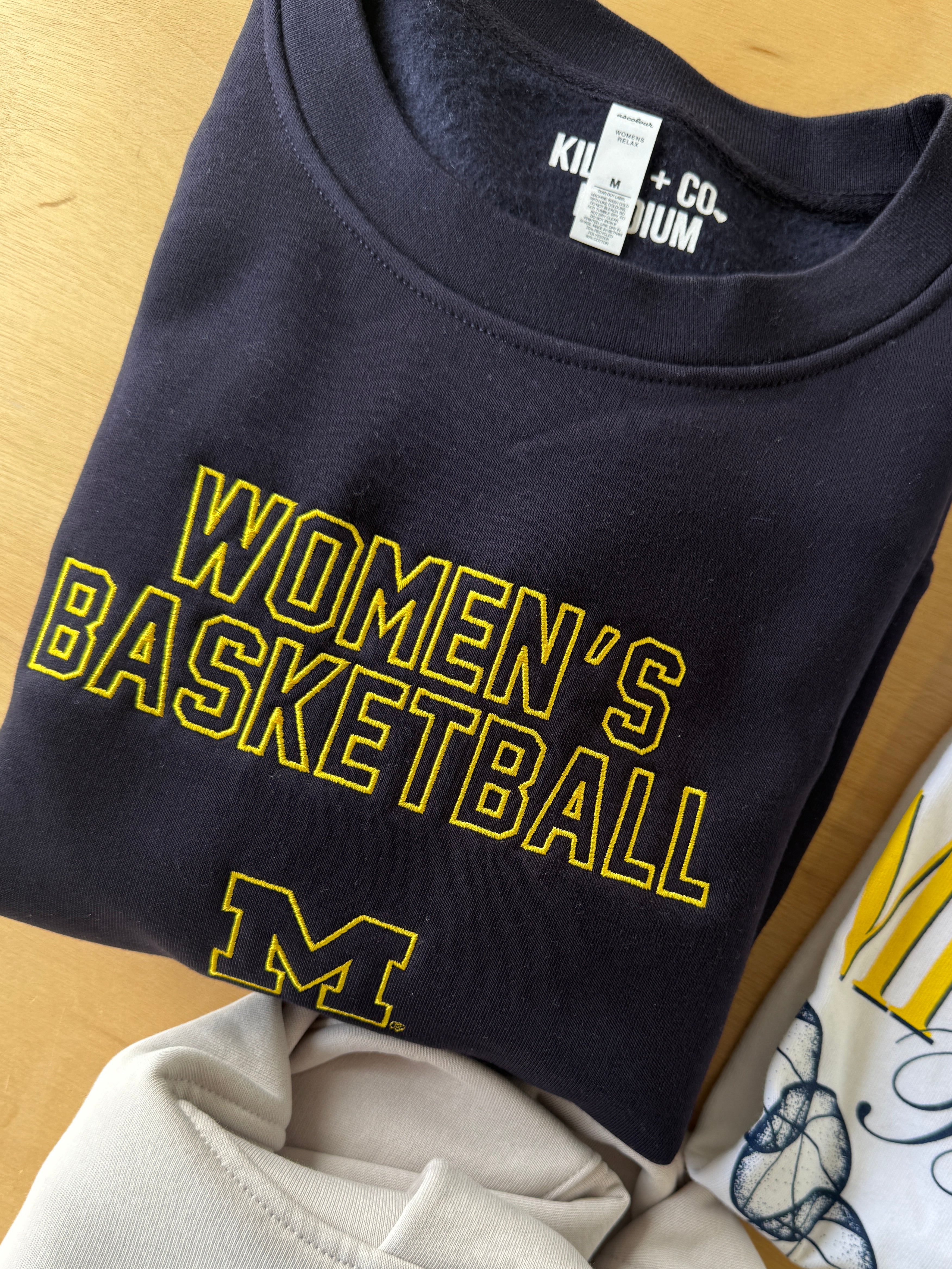 This Michigan Women's Basketball Crew is the NEWEST addition to our Collegiate Collection! The PERFECT women's fit crew for all the Michigan Basketball Fans out there! Women's Basketball EMBROIDERED across the chest + the signature Block M make this a Must Have Style with Endless styling options! This crew hits right at the waist and is totally on trend, perfect to wear with leggings or style with your favorite pair of denim!