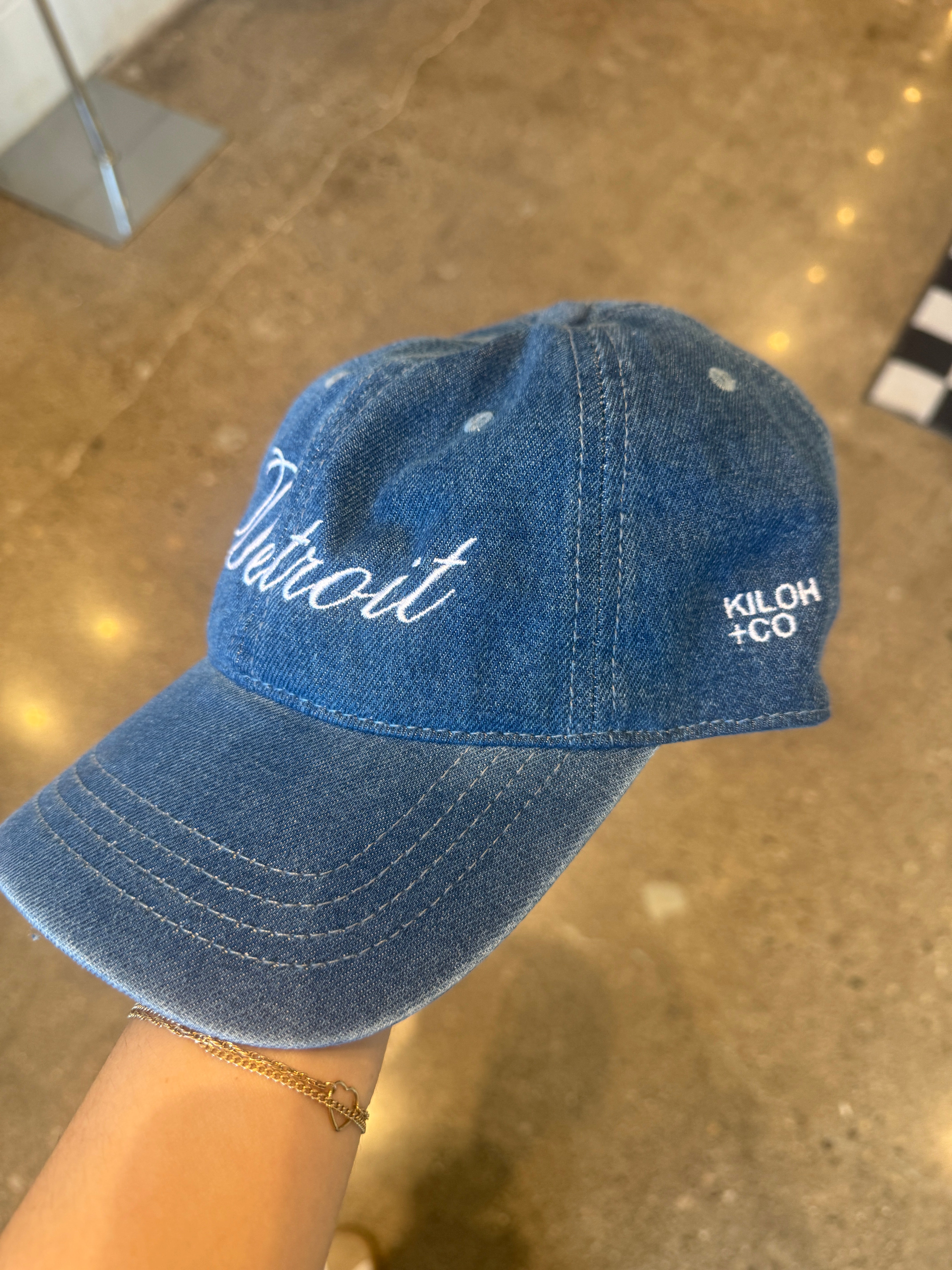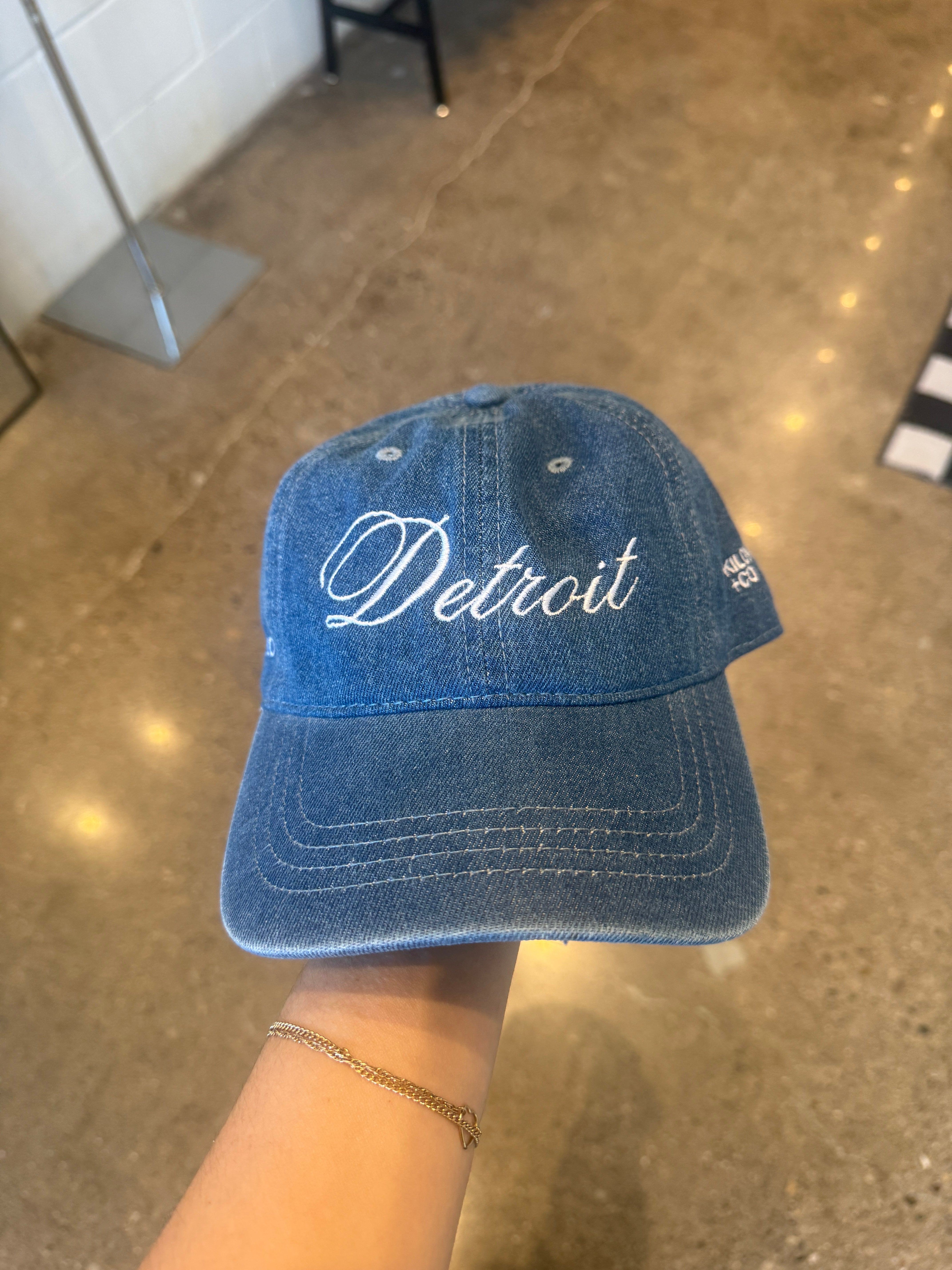 Denim Detroit Script Embroidered Hat (Oops!)