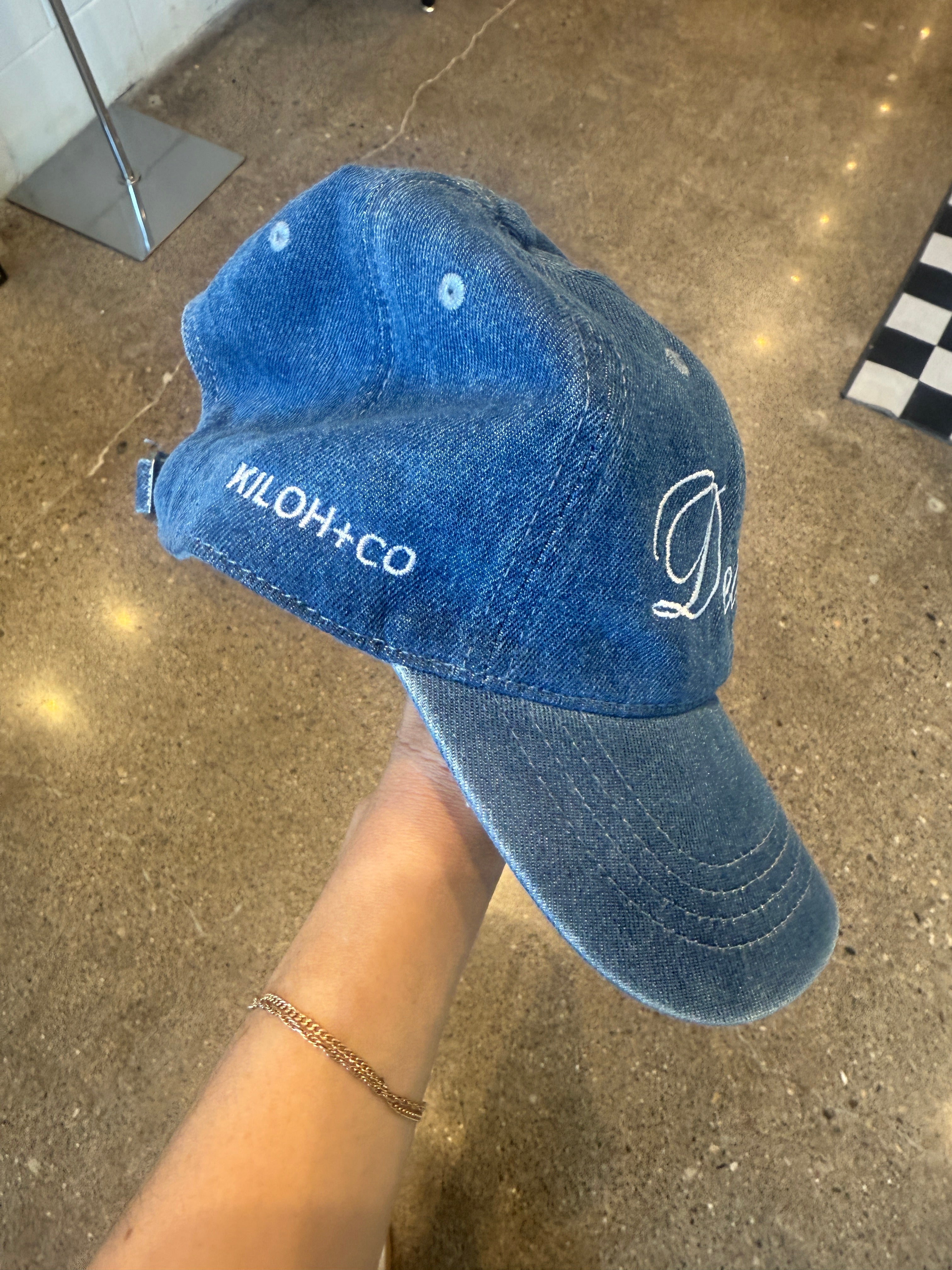 We LOVE a Denim Hat so much we decided to add a New Version to our Dad Hat Collection...BUT we made an Oops and put Kiloh & Co on both sides of the hat! So snag this one at a GREAT PRICE and show your Kiloh Love LOL!
