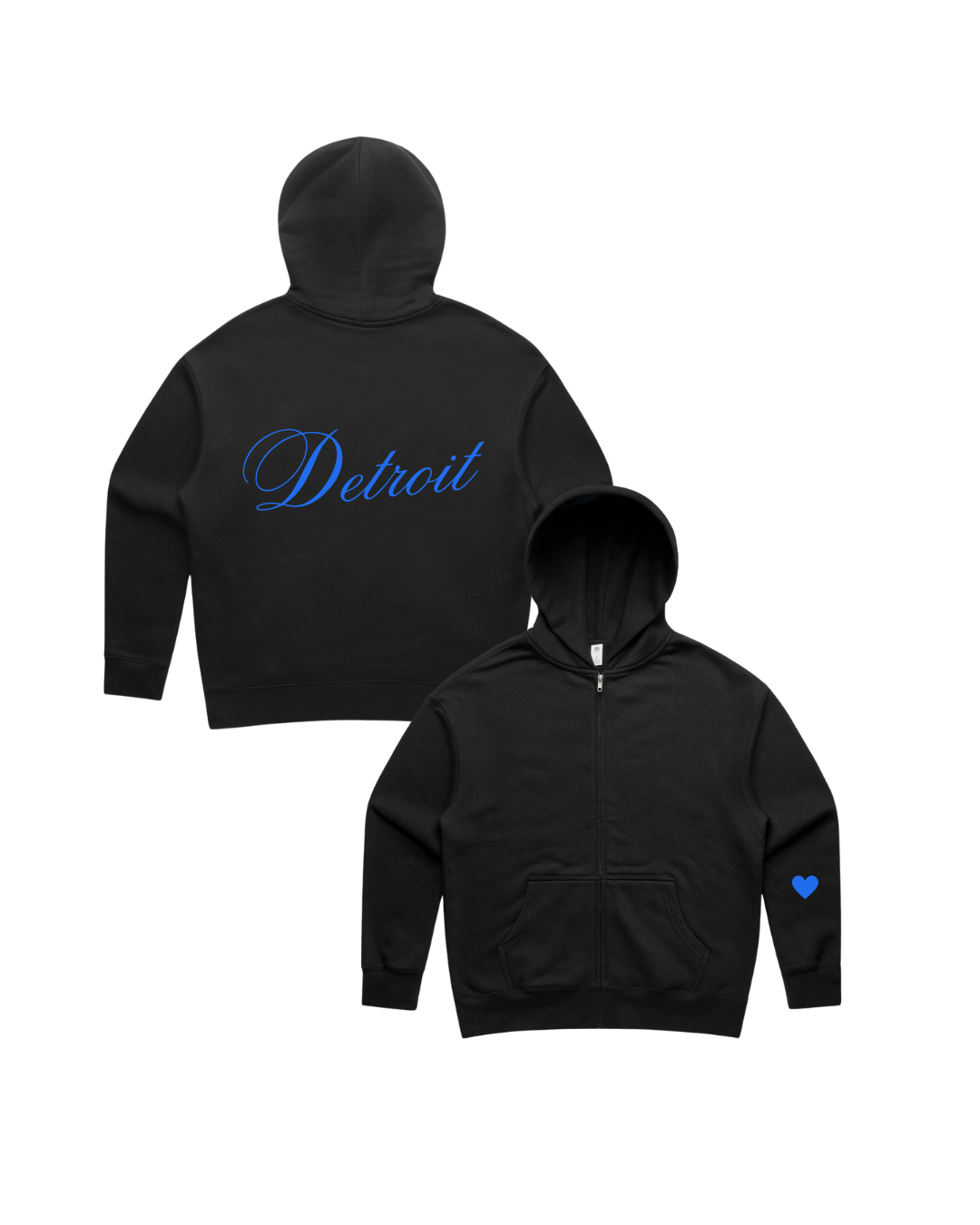 Make sure you get your hands on our FAVORITE Women's Relaxed Zip-Up Hoodie! A new style to be added to your Game Day Collection. We are LOVING this style + the EMBROIDERED Detroit Script on the back in blue with blue embroidered heart on the sleeve make this a perfect layering piece for football szn!