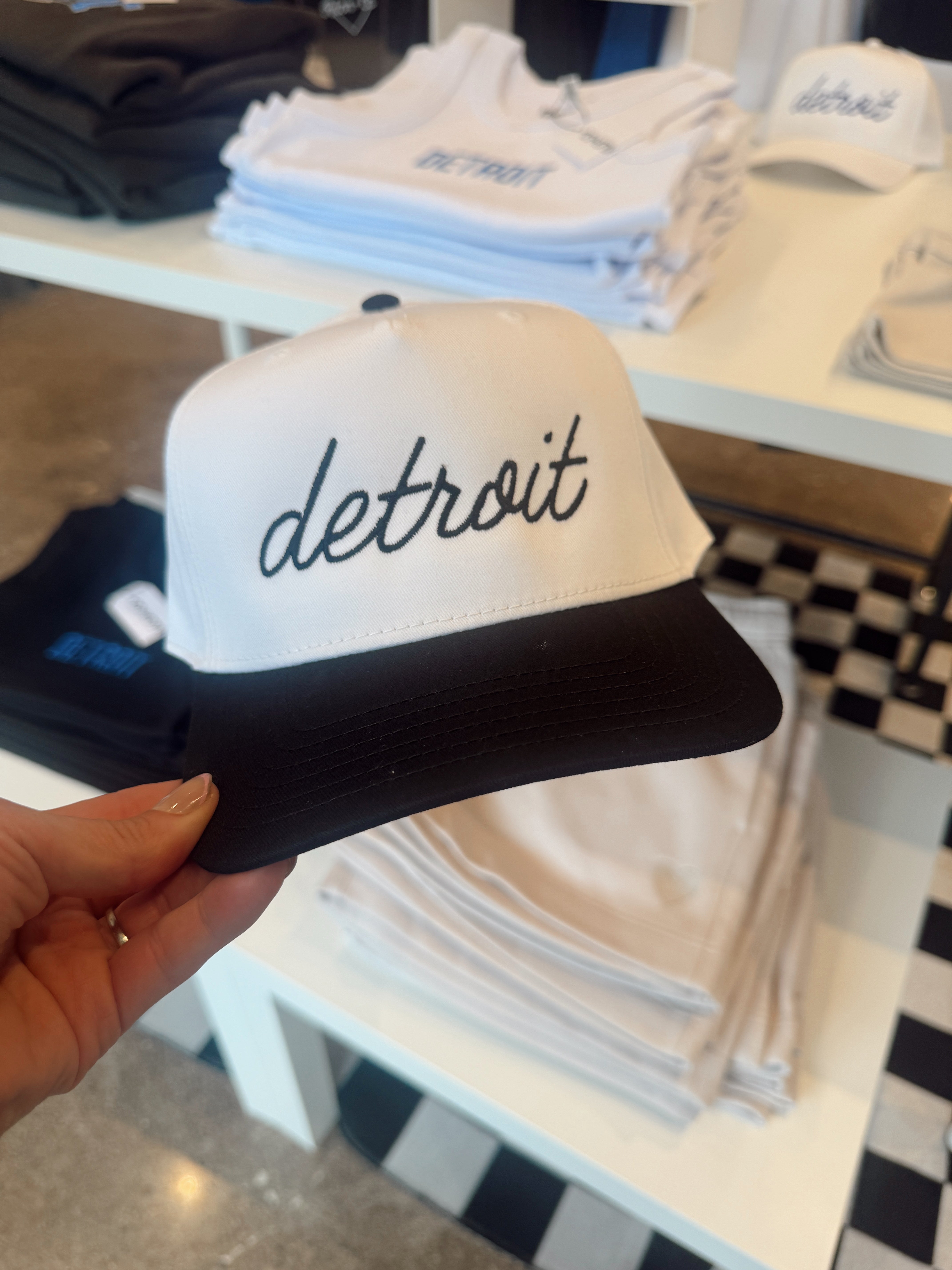 This black + white embroidered Detroit hat is PERFECT for GAME DAY! The embroidered design makes it perfect for Game Day!