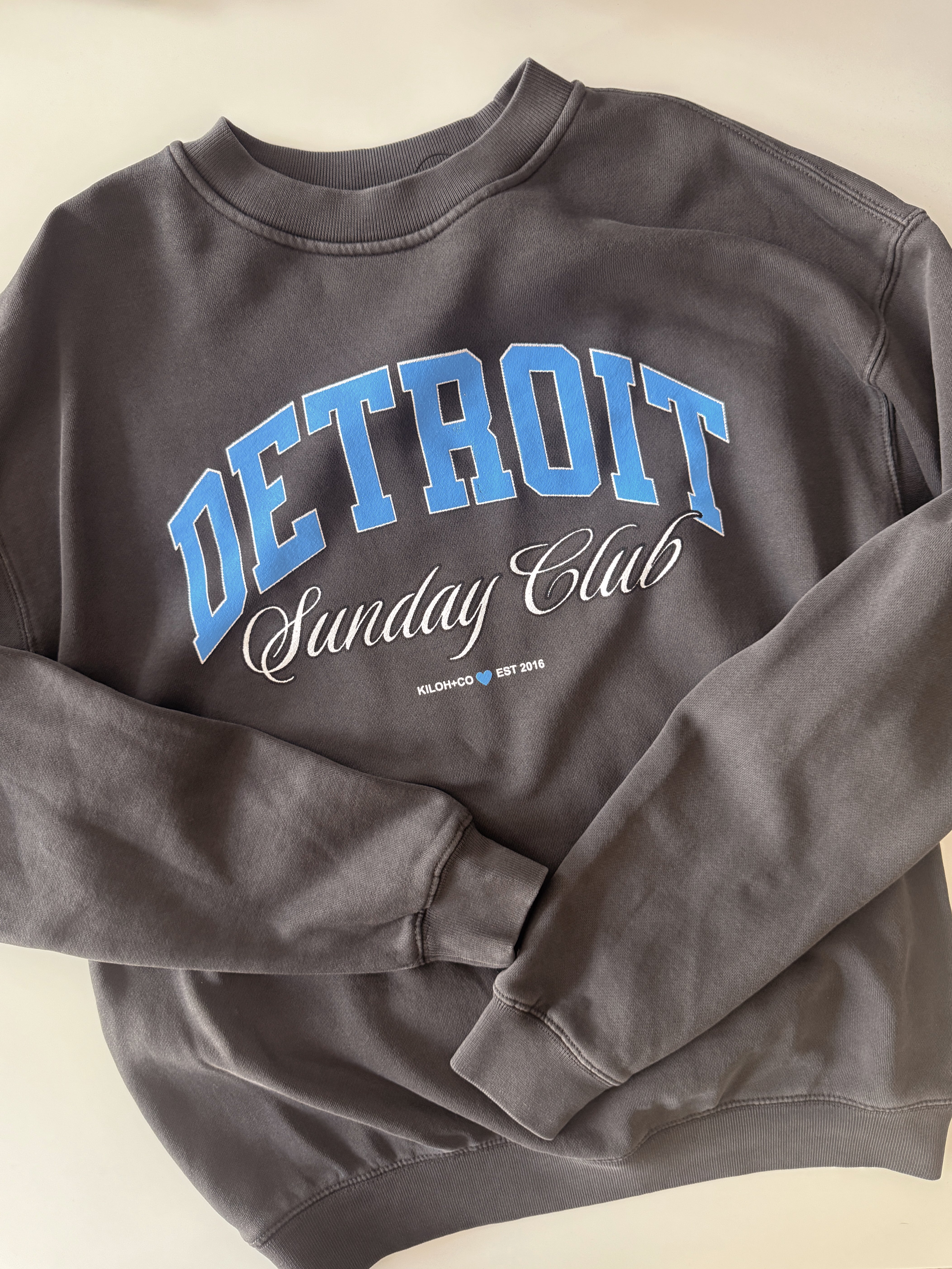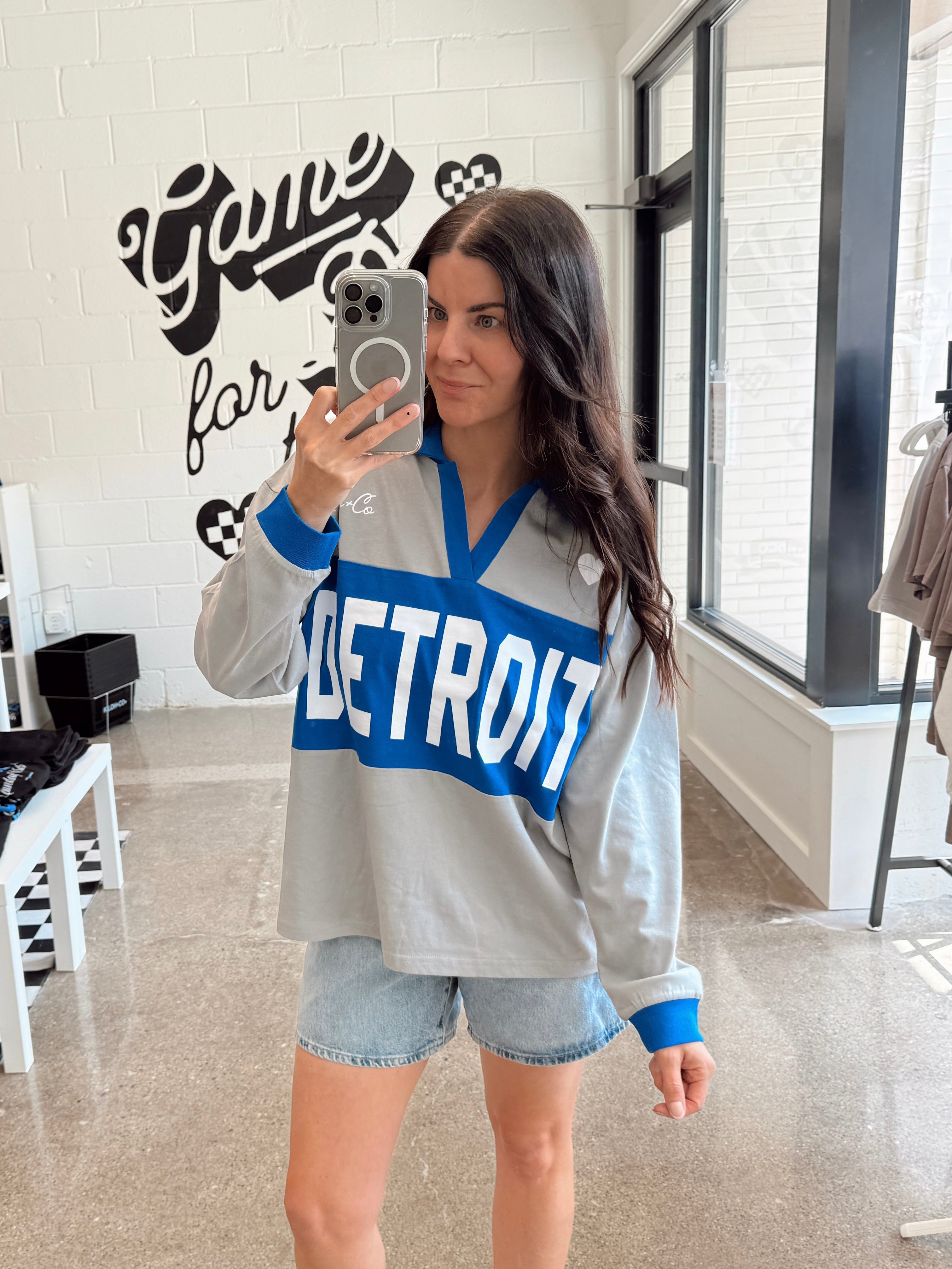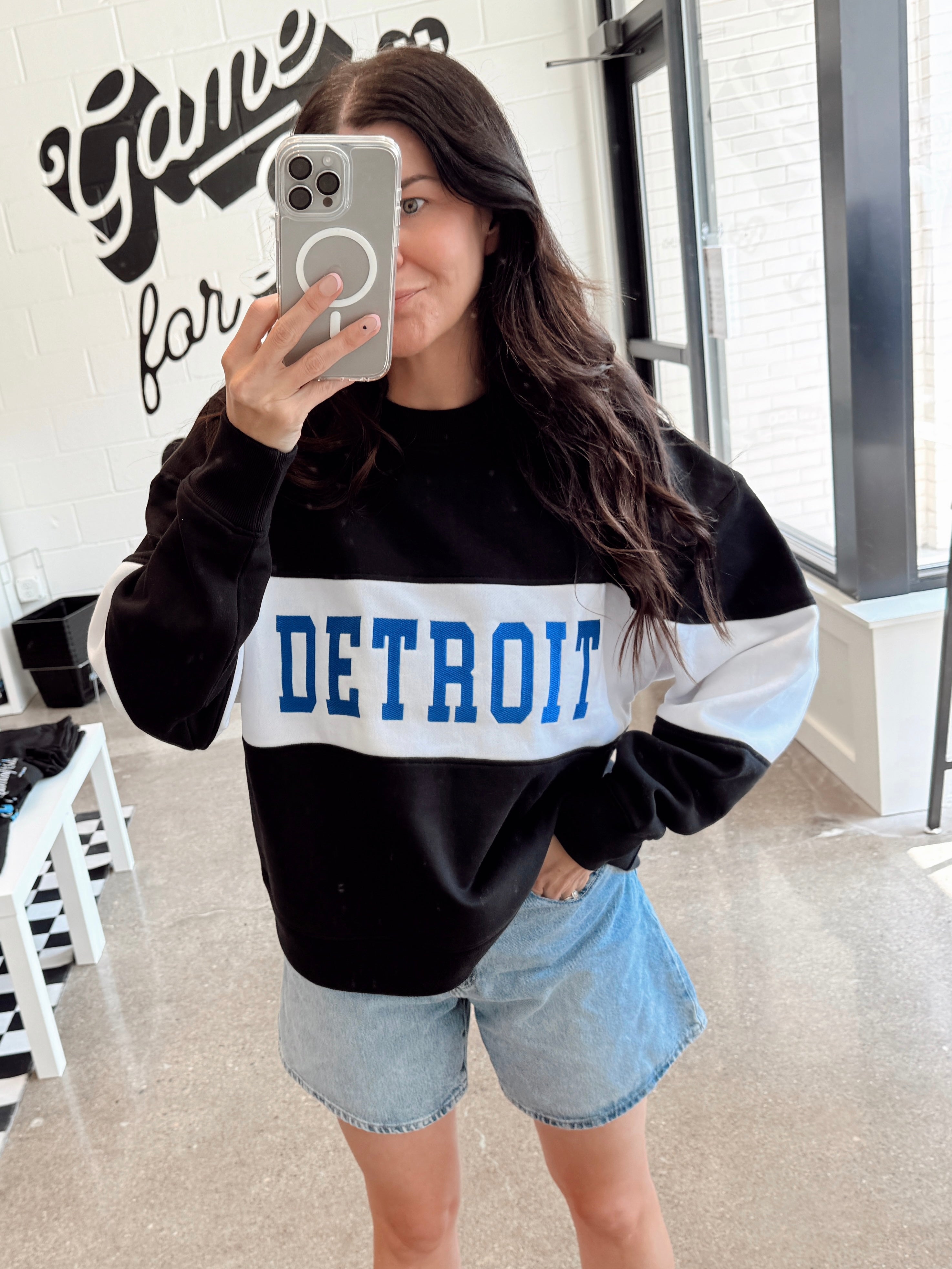 Detroit BLUE Varsity Colorblock Oversized Boyfriend Crew