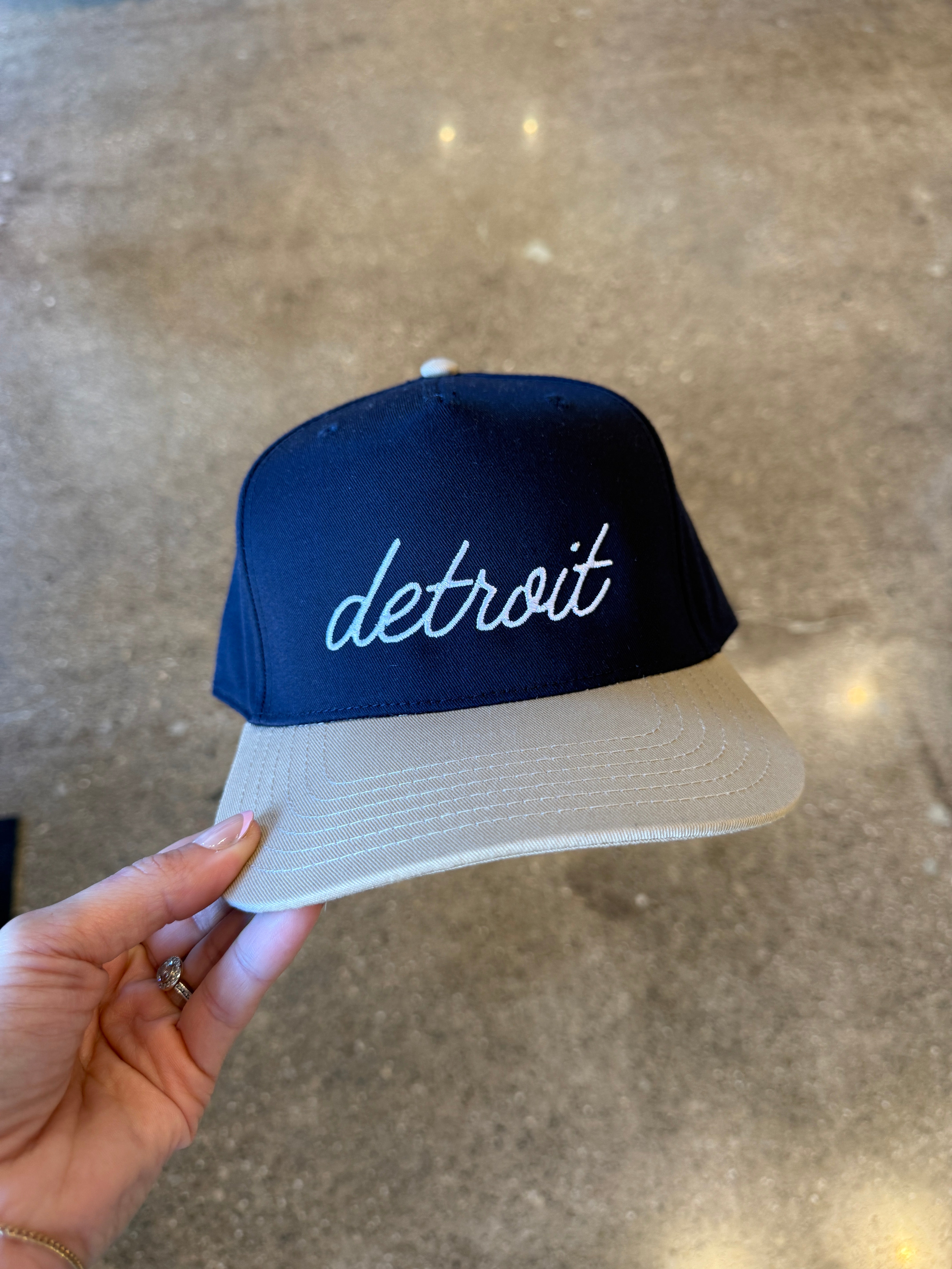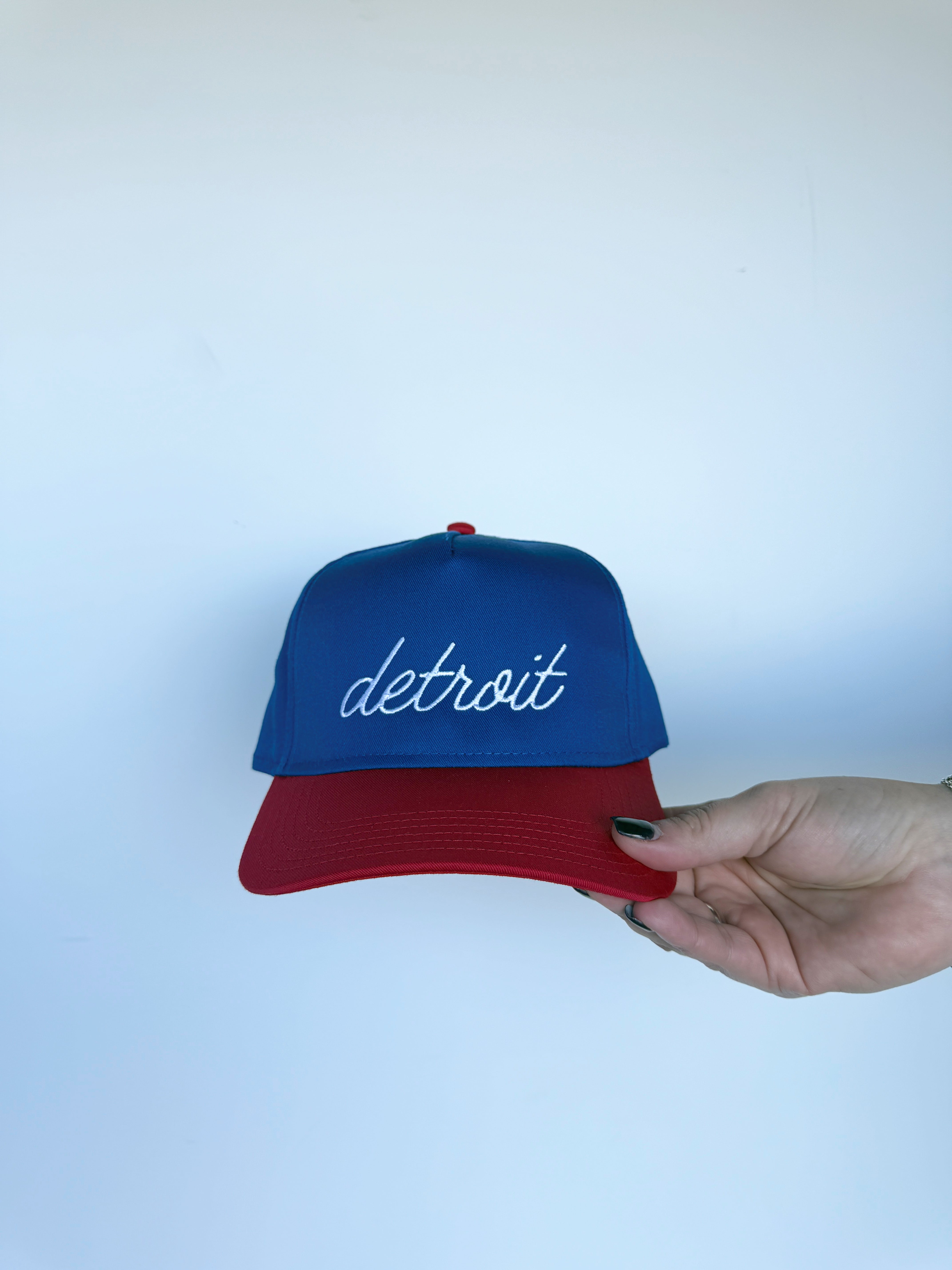Detroit Script Royal Blue Game Day Embroidered Hat