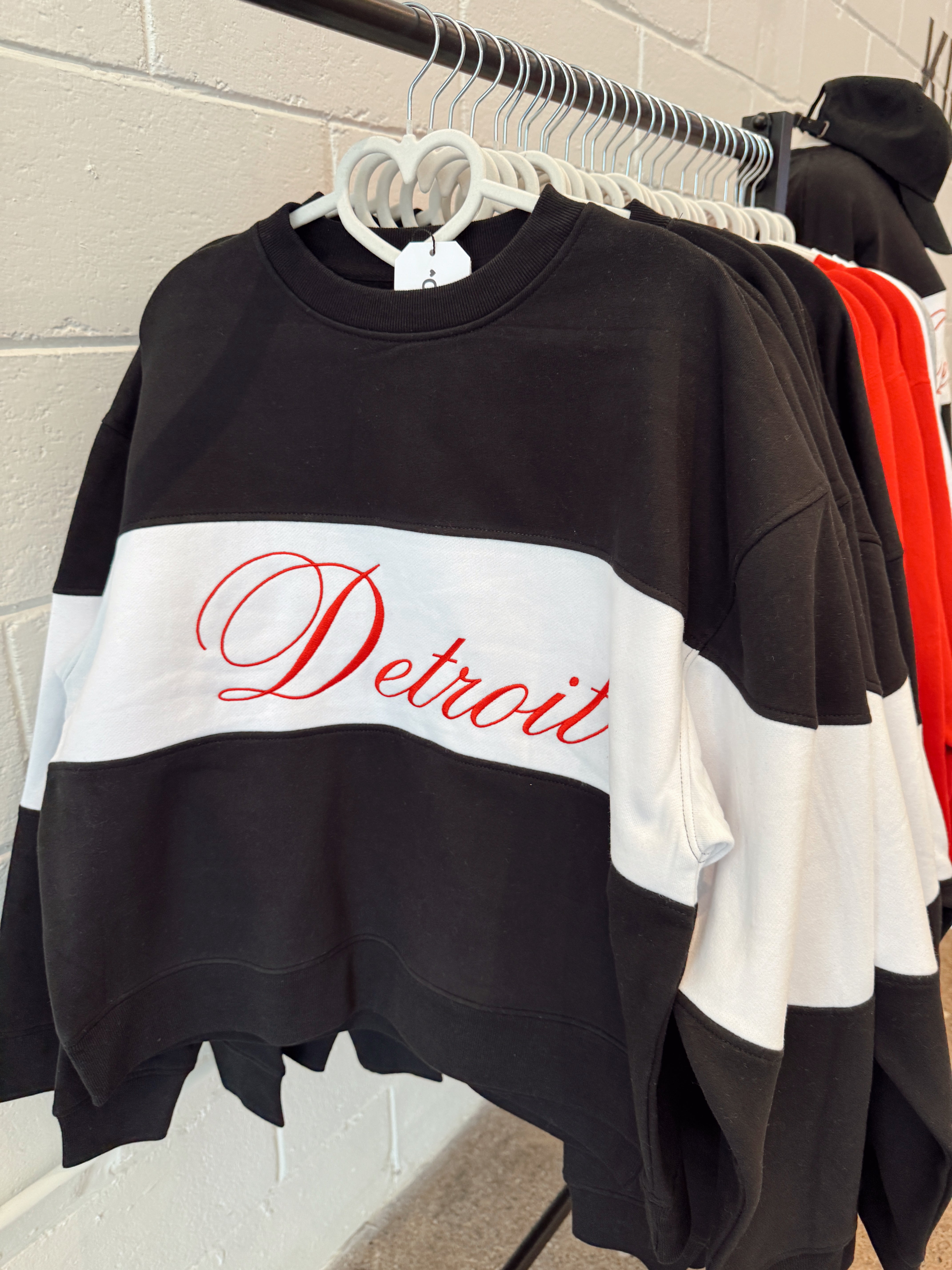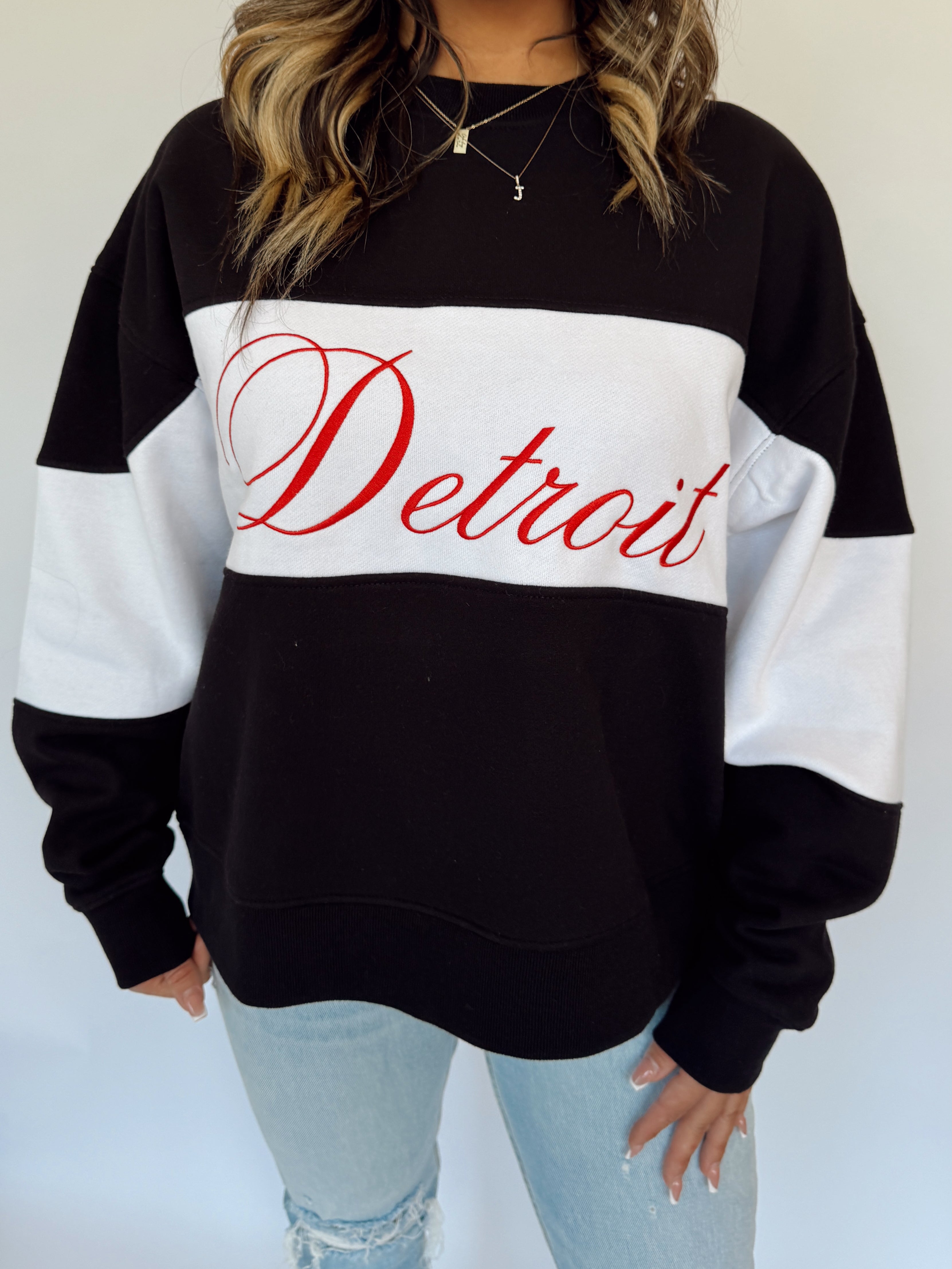 Detroit RED Script Colorblock Oversized Boyfriend Crew
