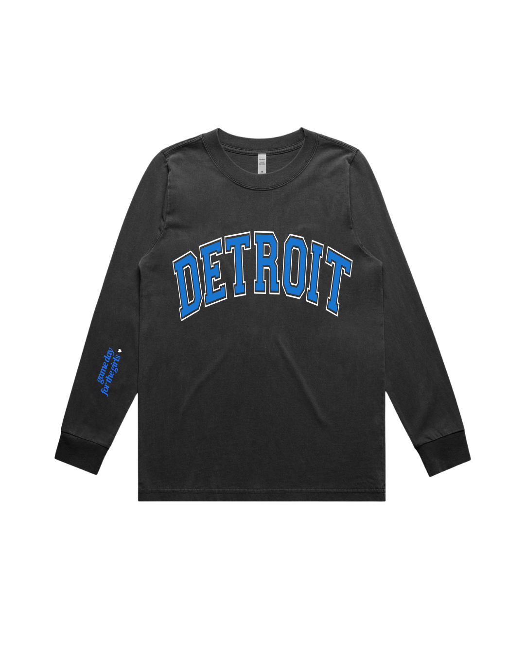 Detroit Varsity Faded Black Long Sleeve Womens Relaxed Tee