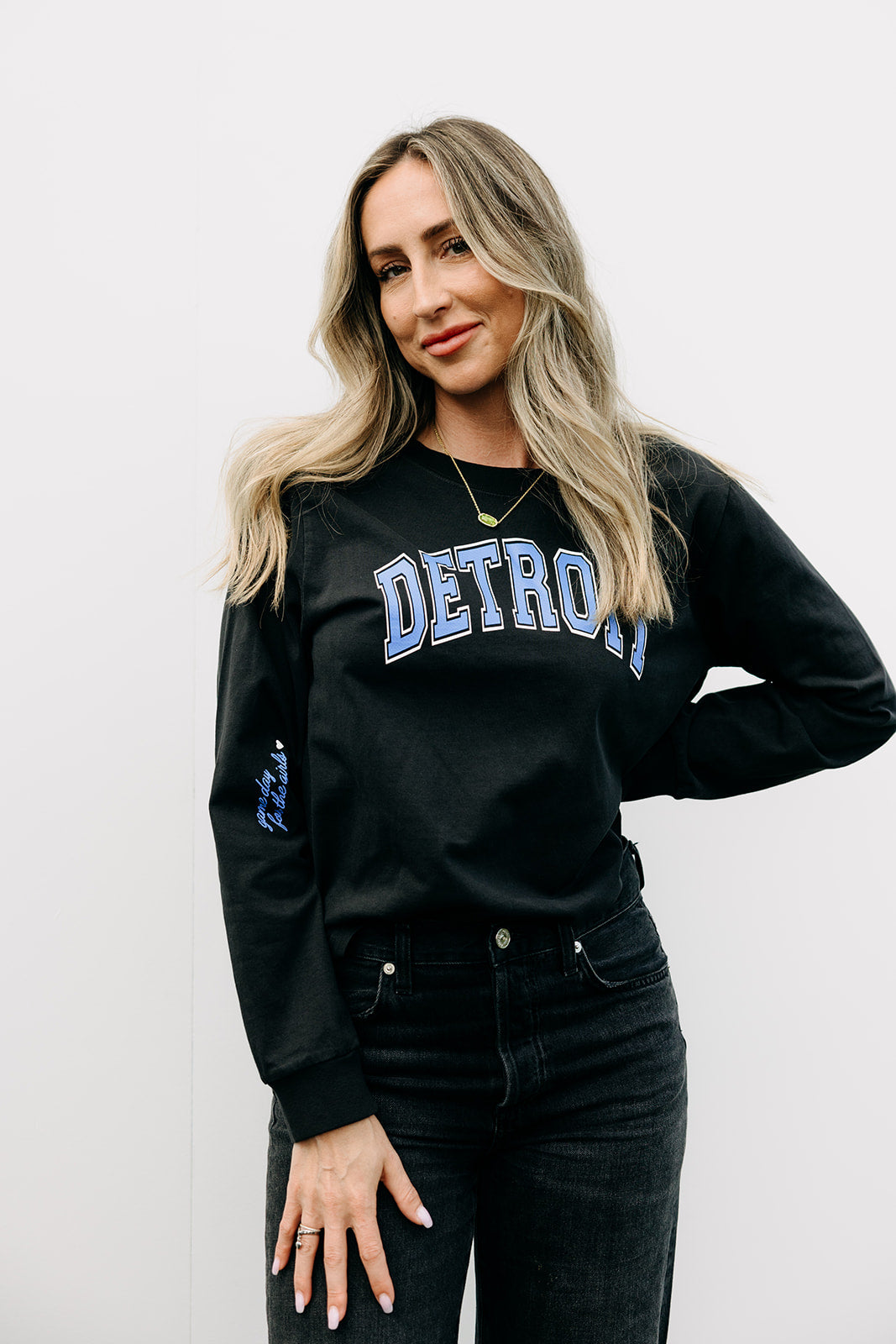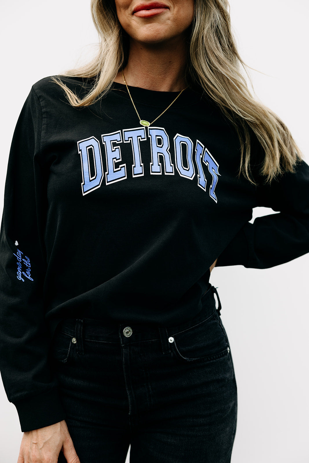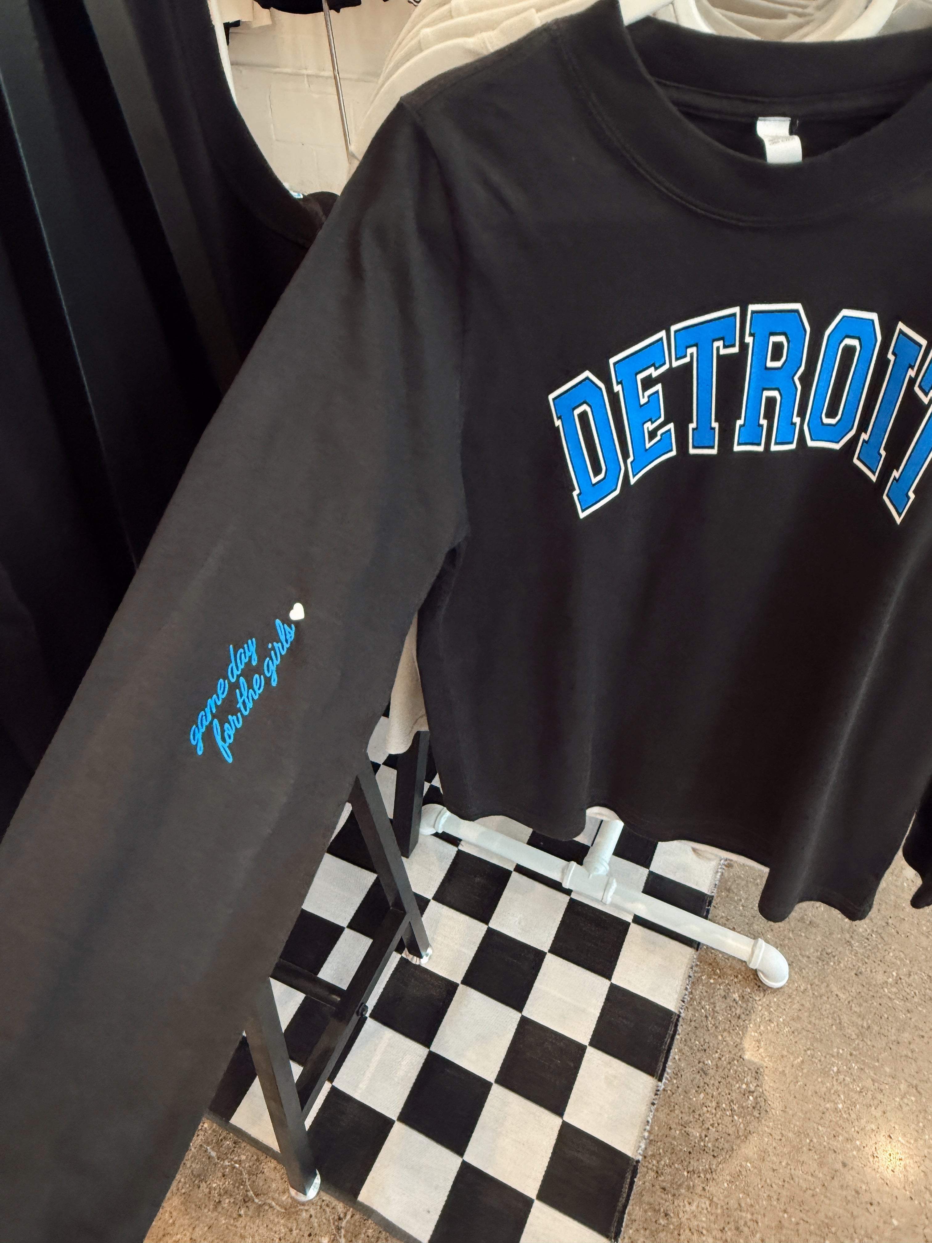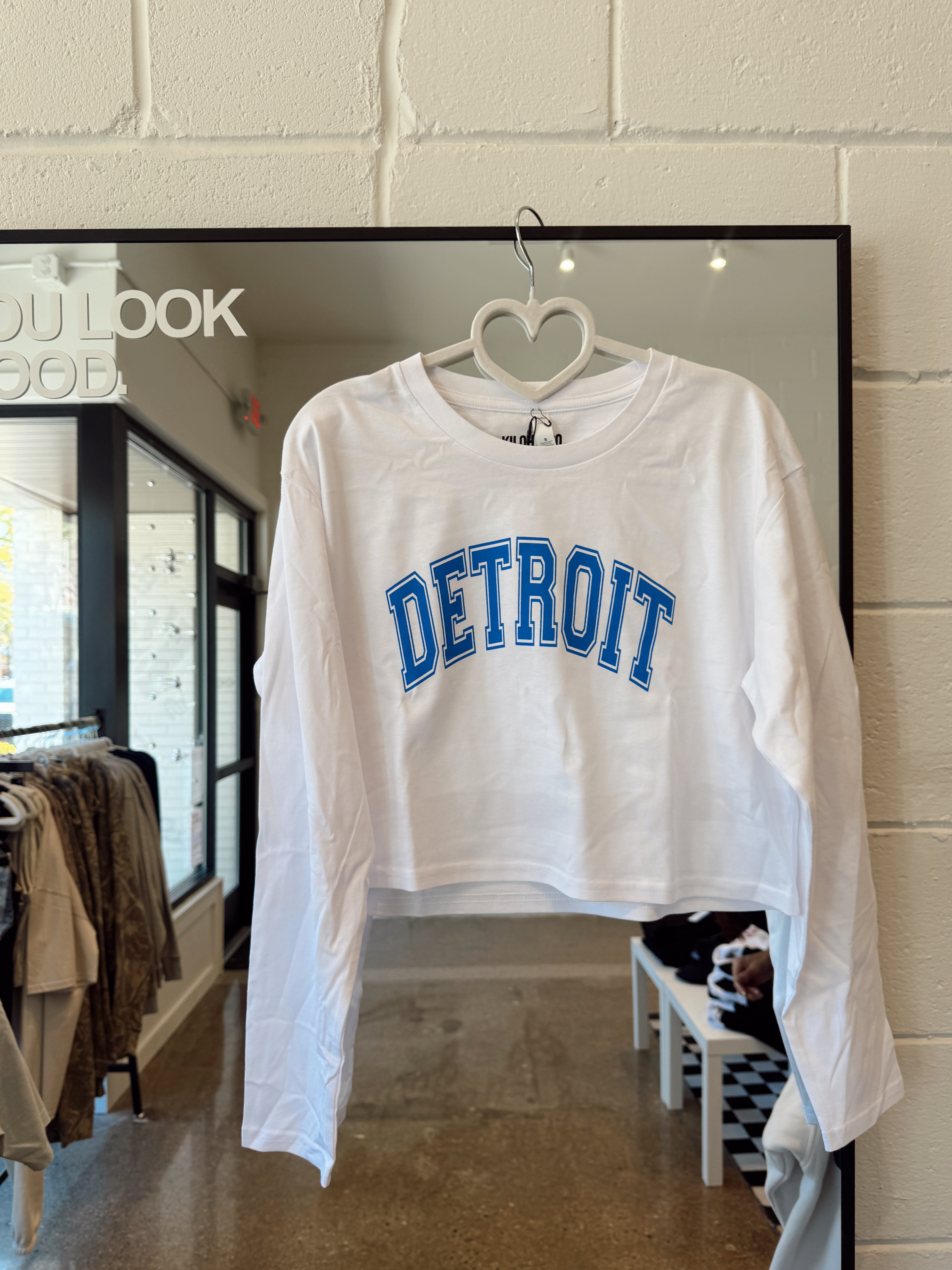 Detroit Cropped Long Sleeve White + Blue Cropped Tee