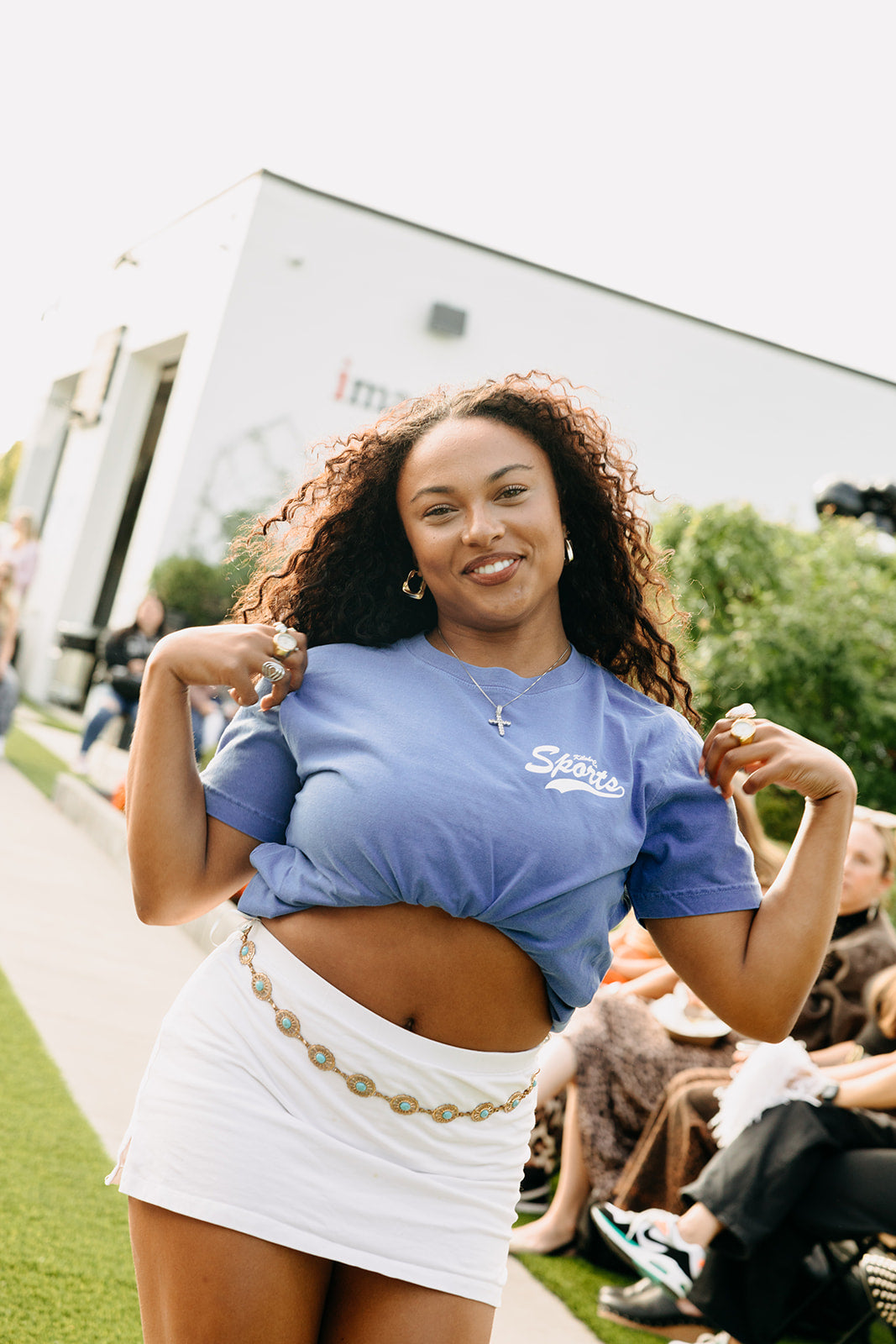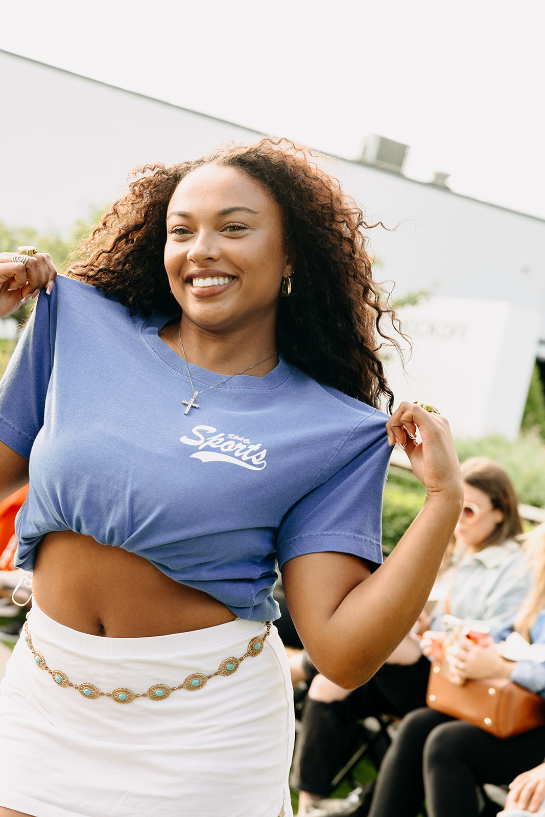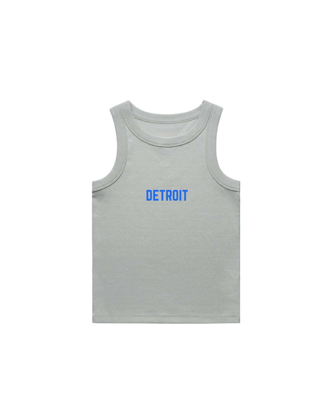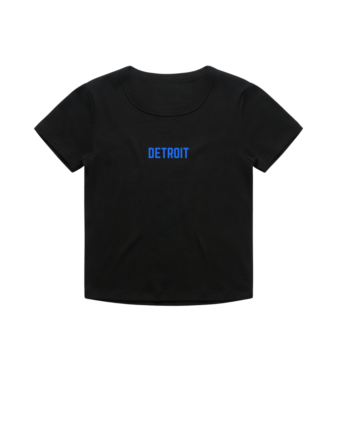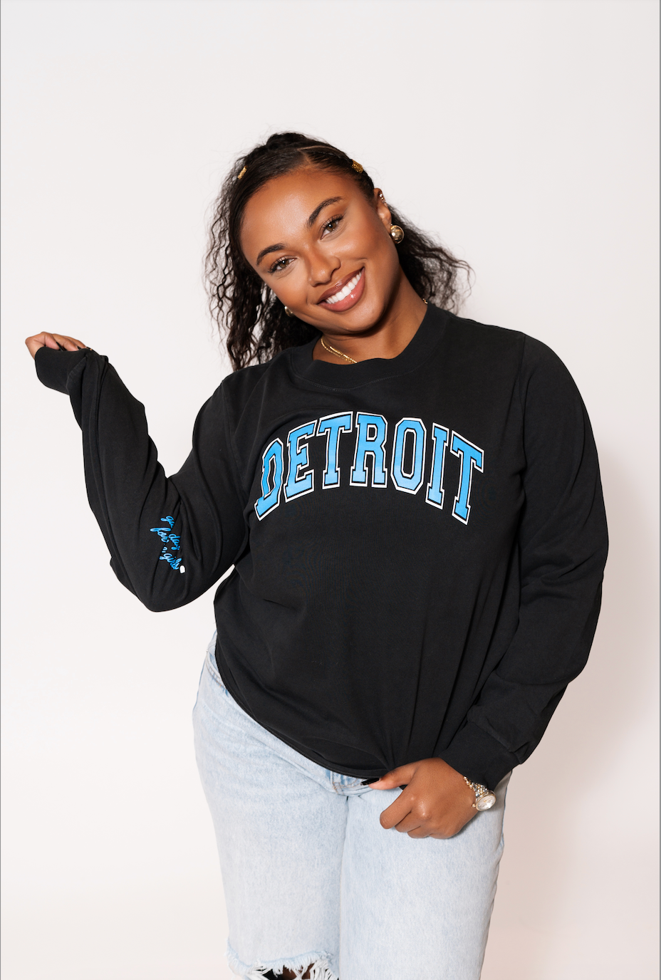 Detroit Cropped Long Sleeve White + Blue Cropped Tee