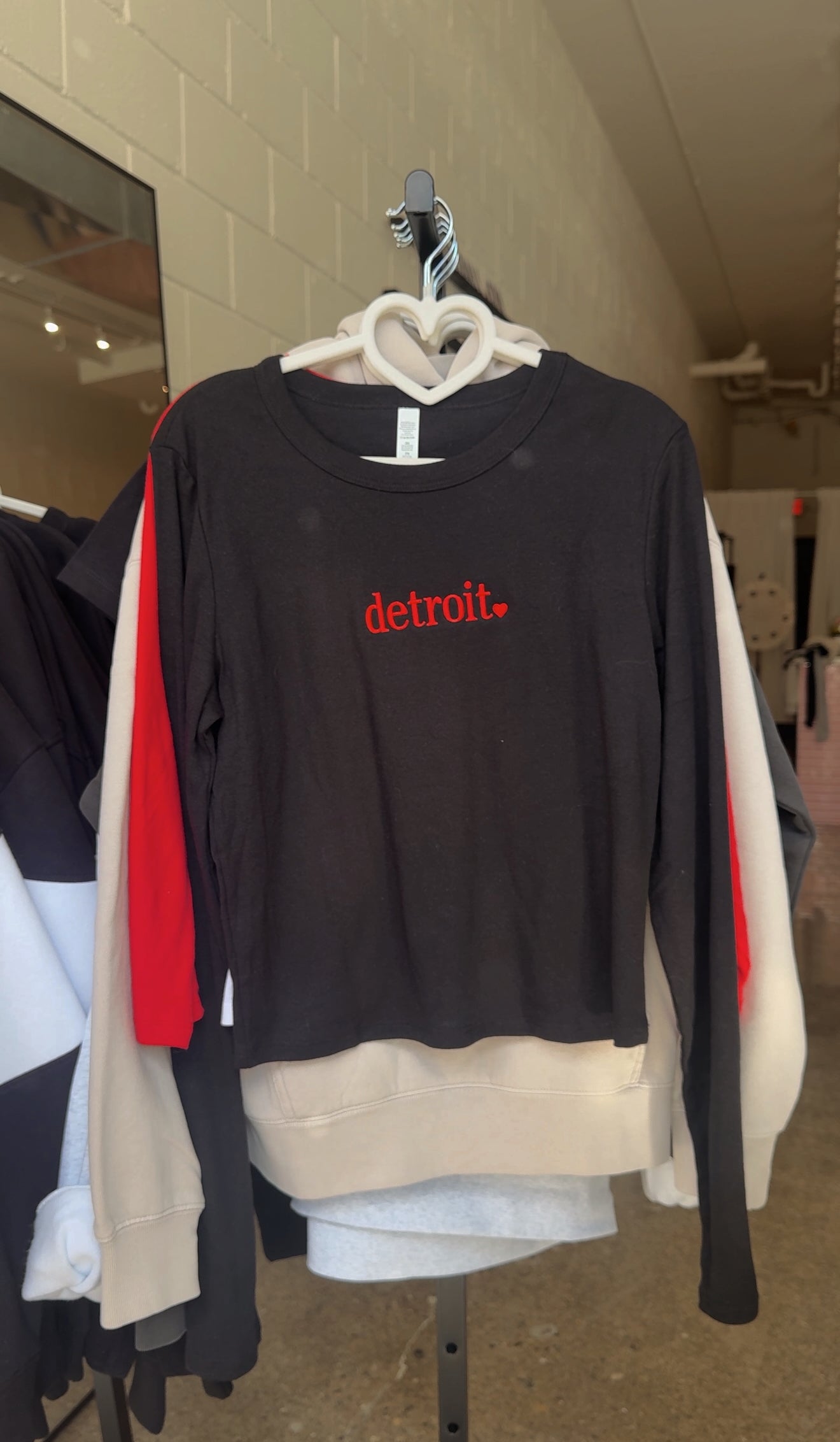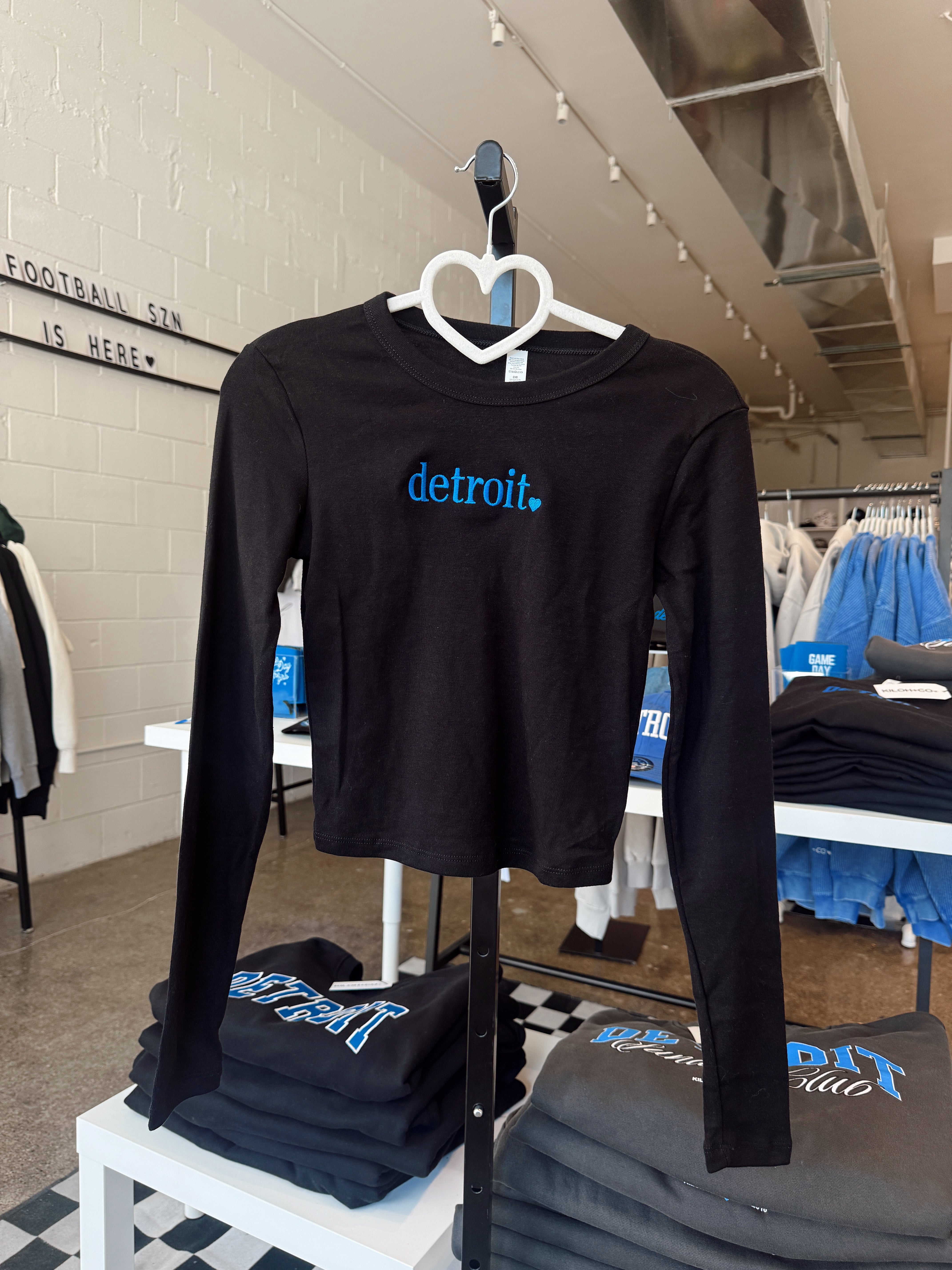 Detroit Black + Blue Cropped Long Sleeve Tee