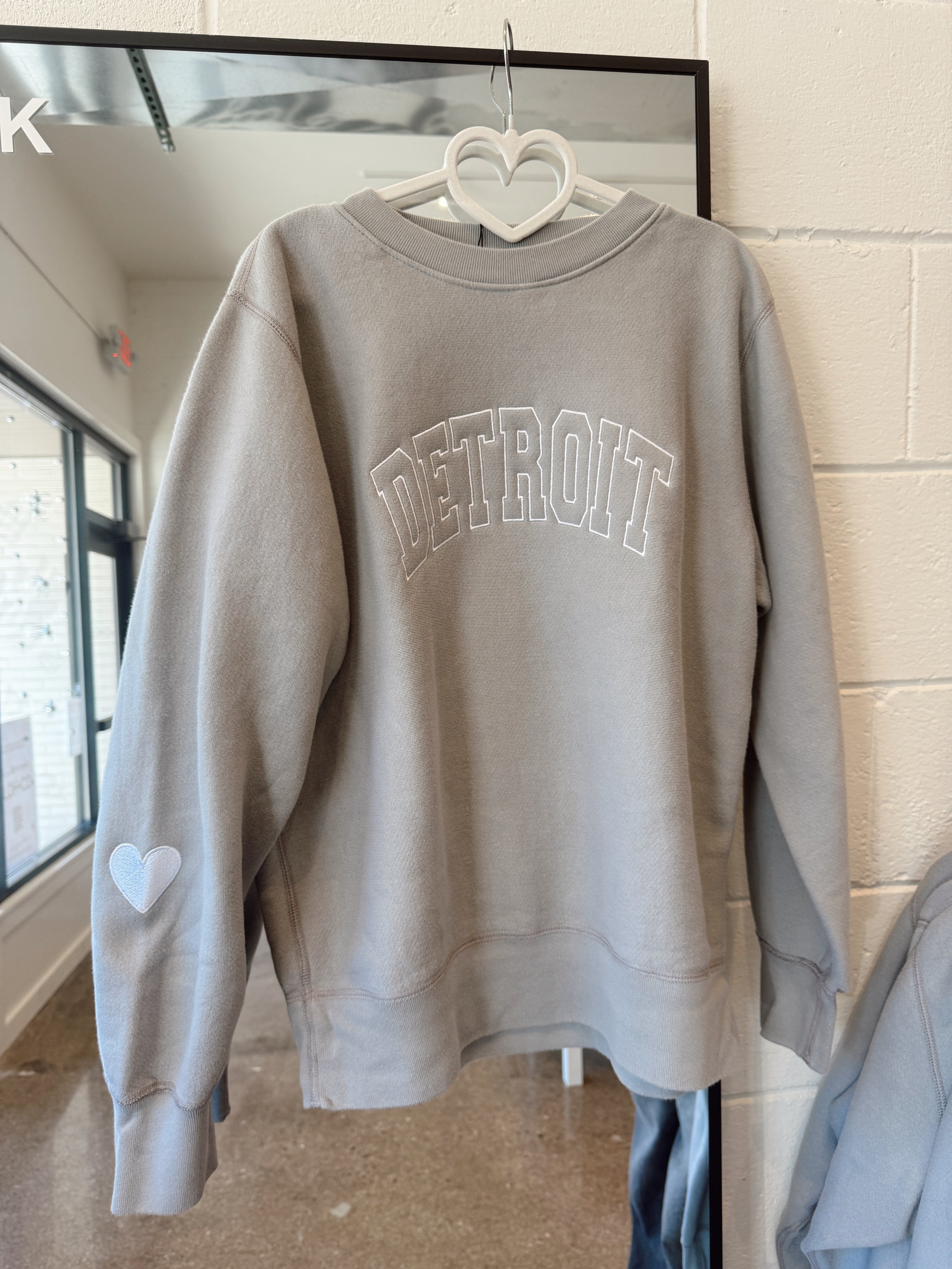 Detroit Varsity Vintage Light Grey Embroidered Crew