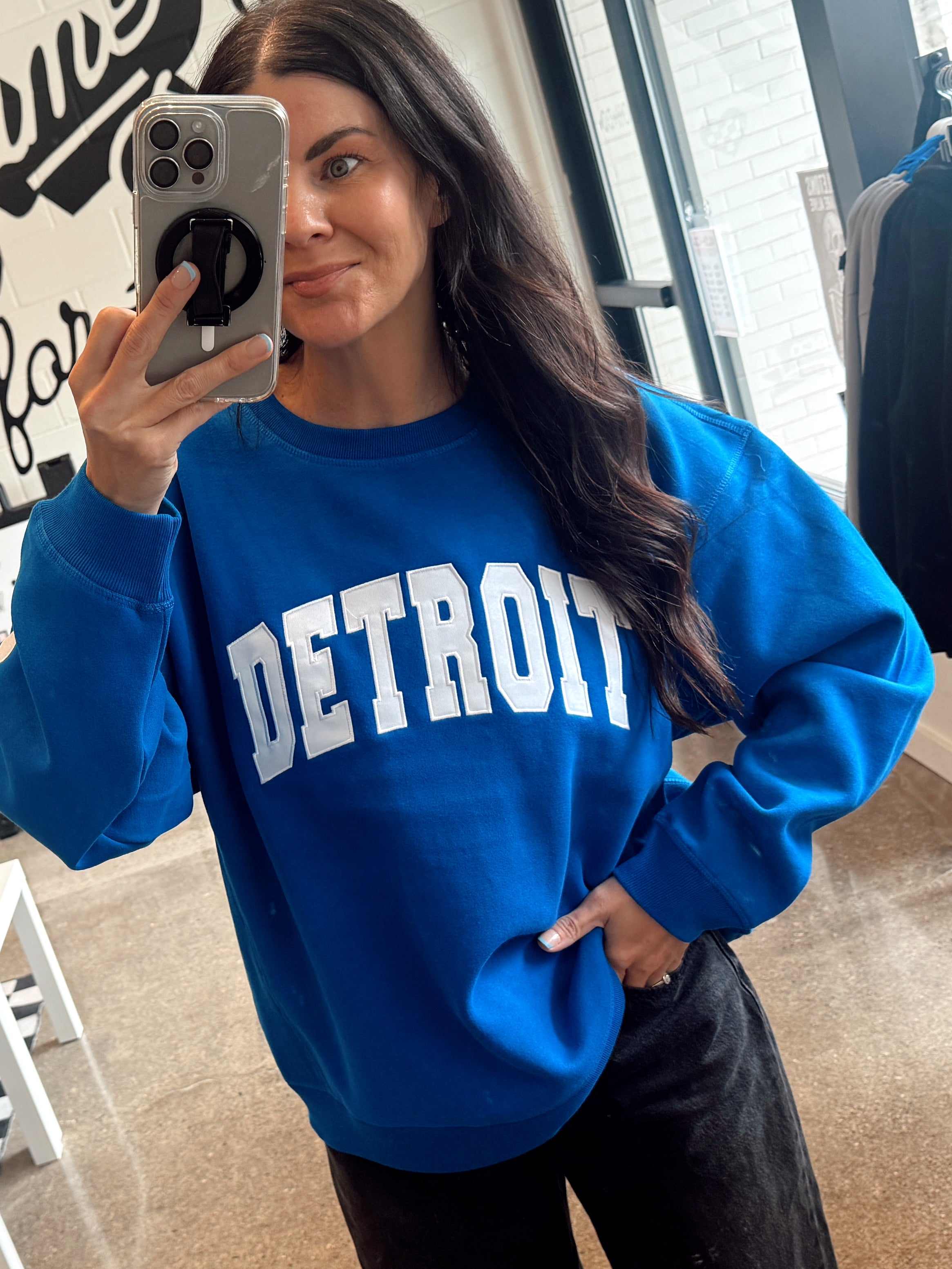 Detroit Blue Patch Embroidered Signature Oversized Crew