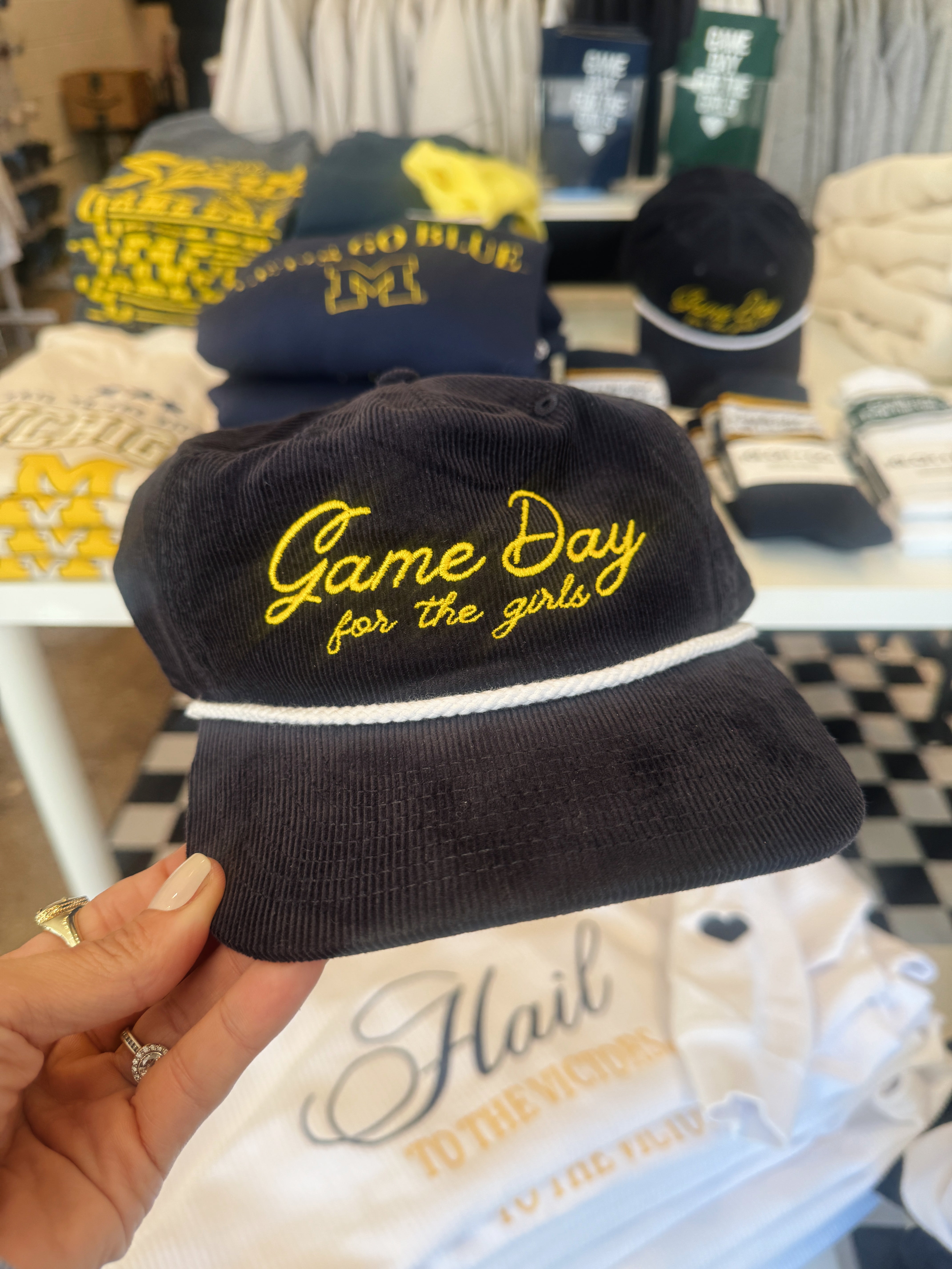 Navy Game Day for the Girls Corduroy Embroidered Hat