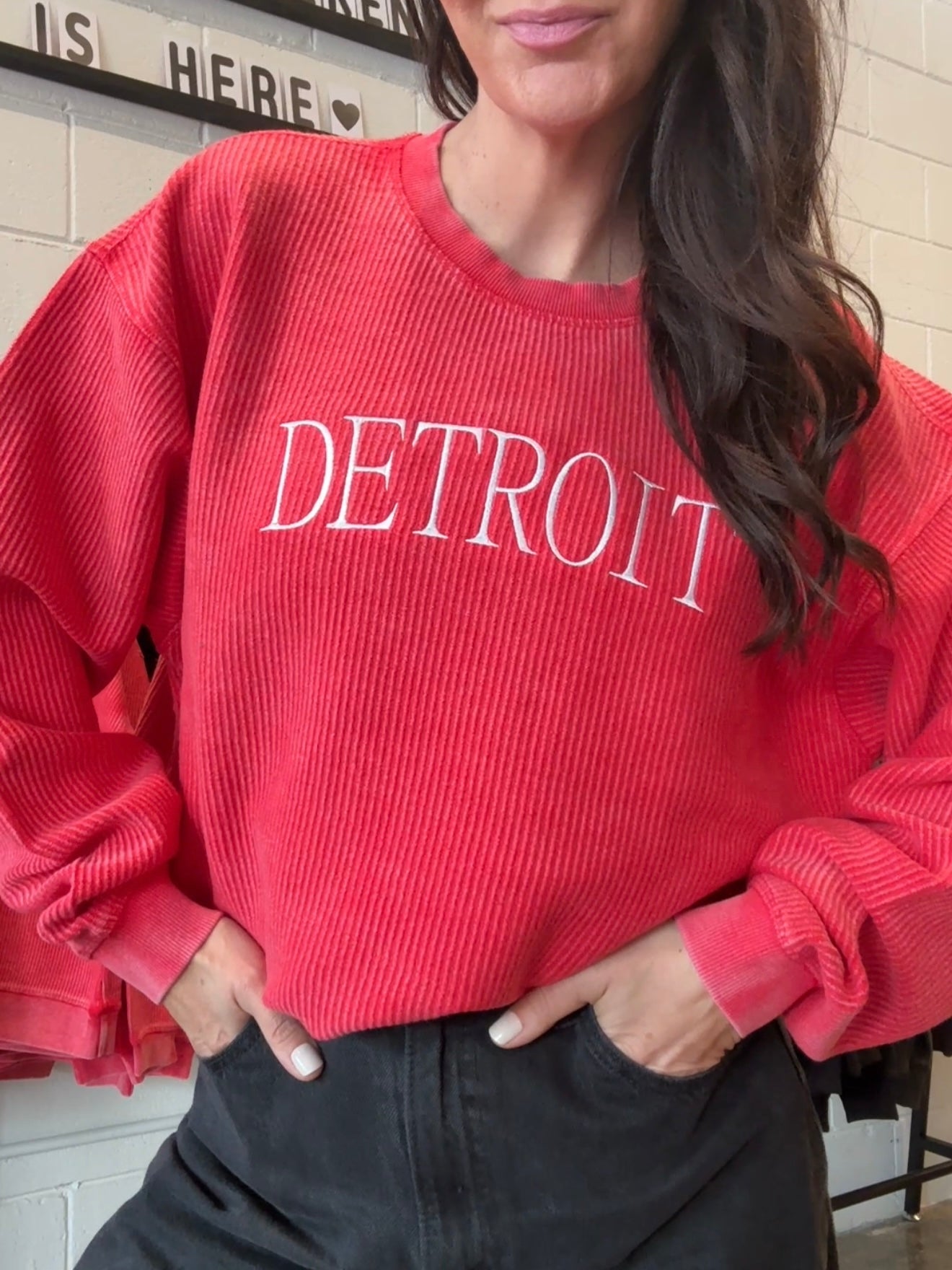 Detroit Red + White Women’s Relaxed Varsity Crew