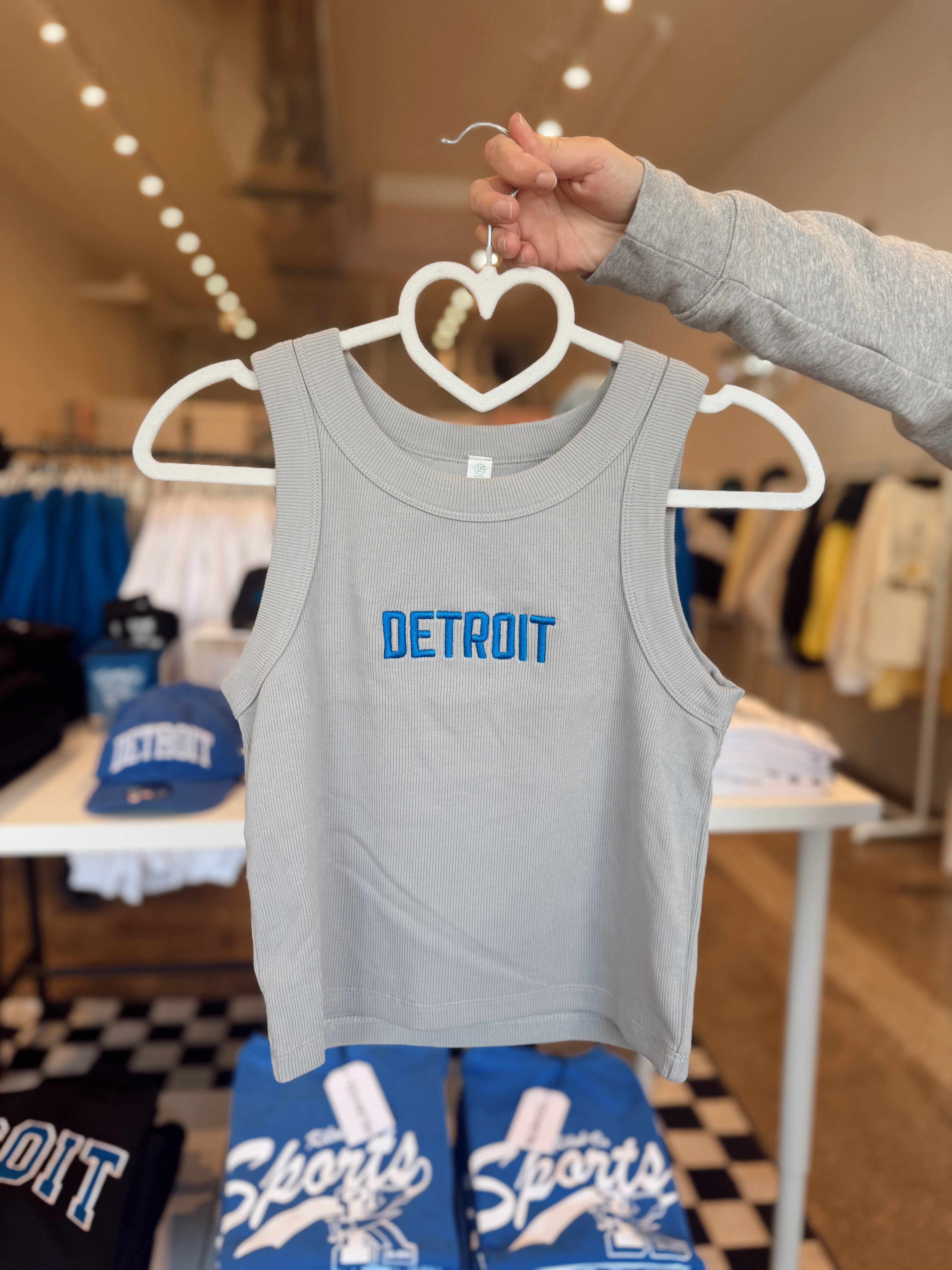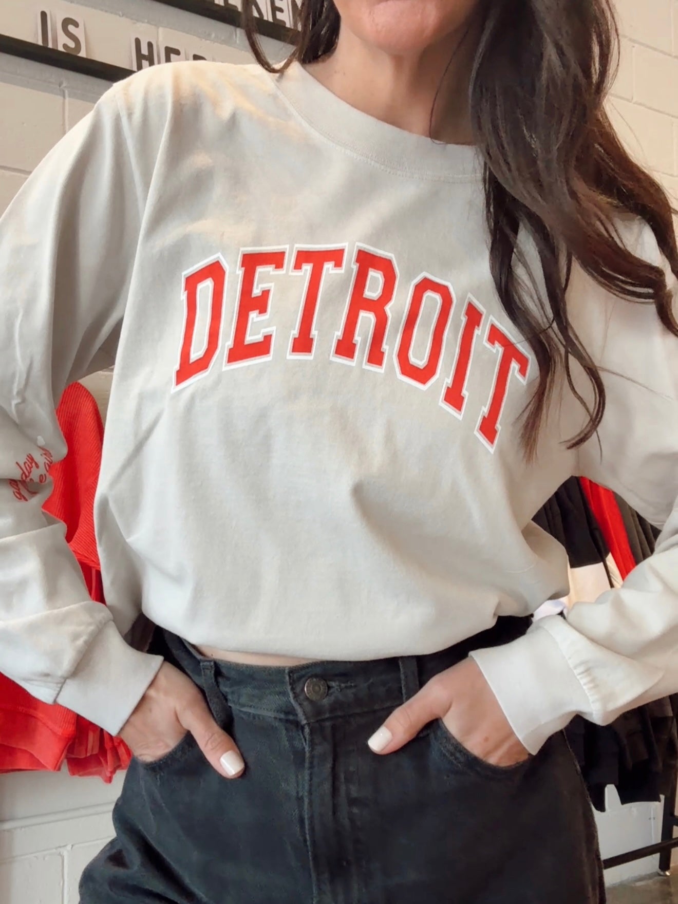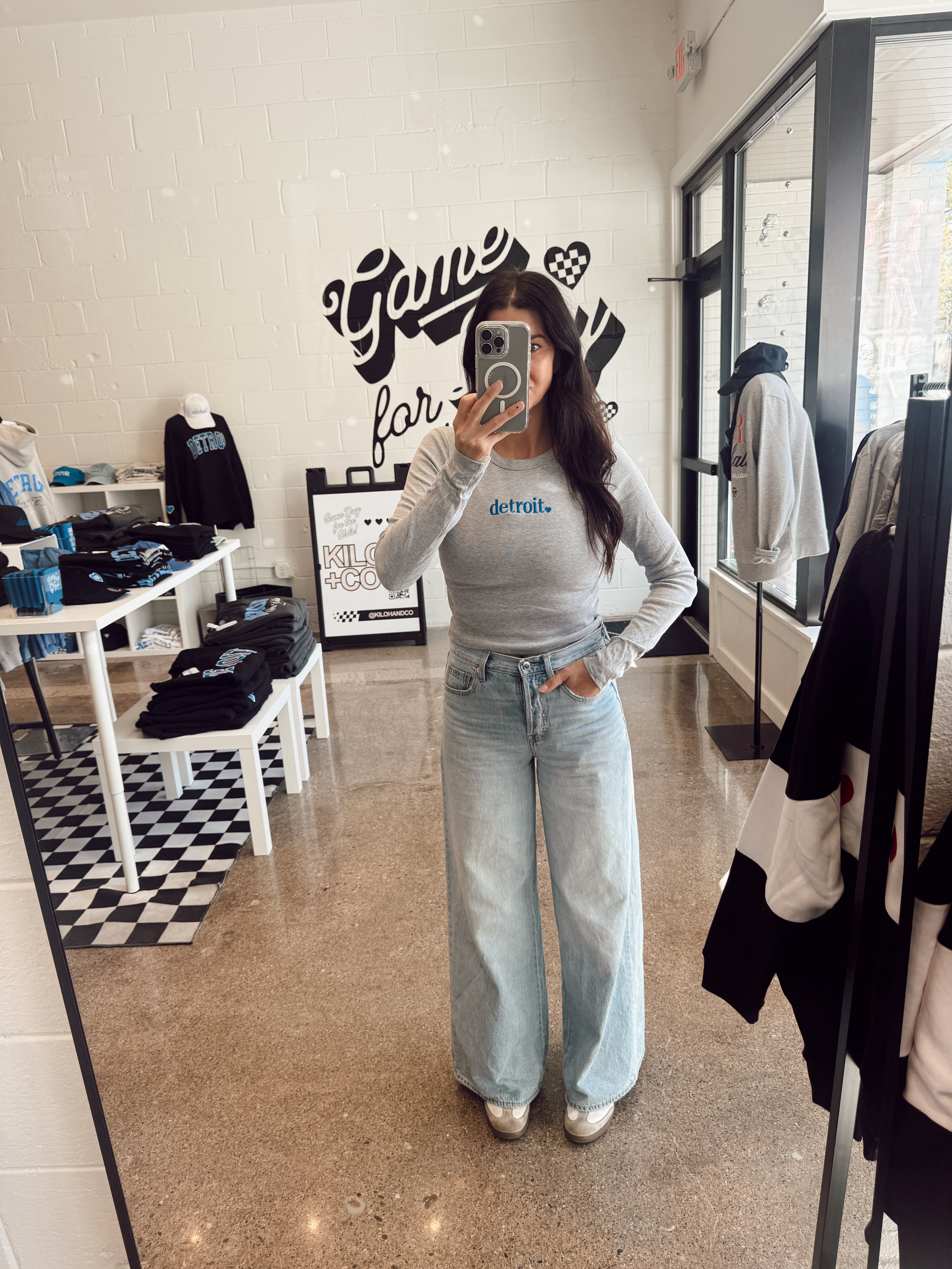 Detroit Grey + Blue Cropped Long Sleeve Tee