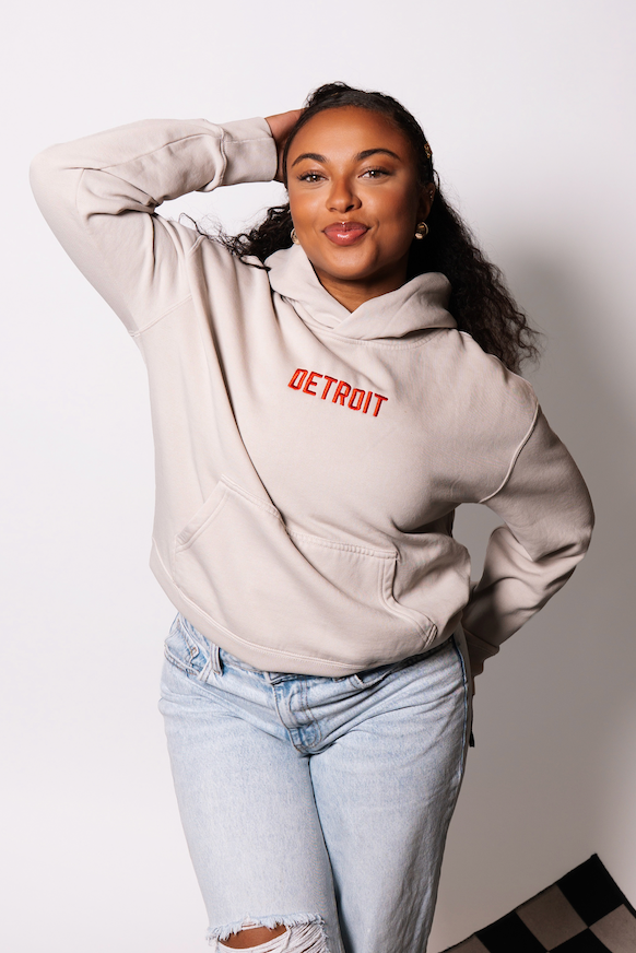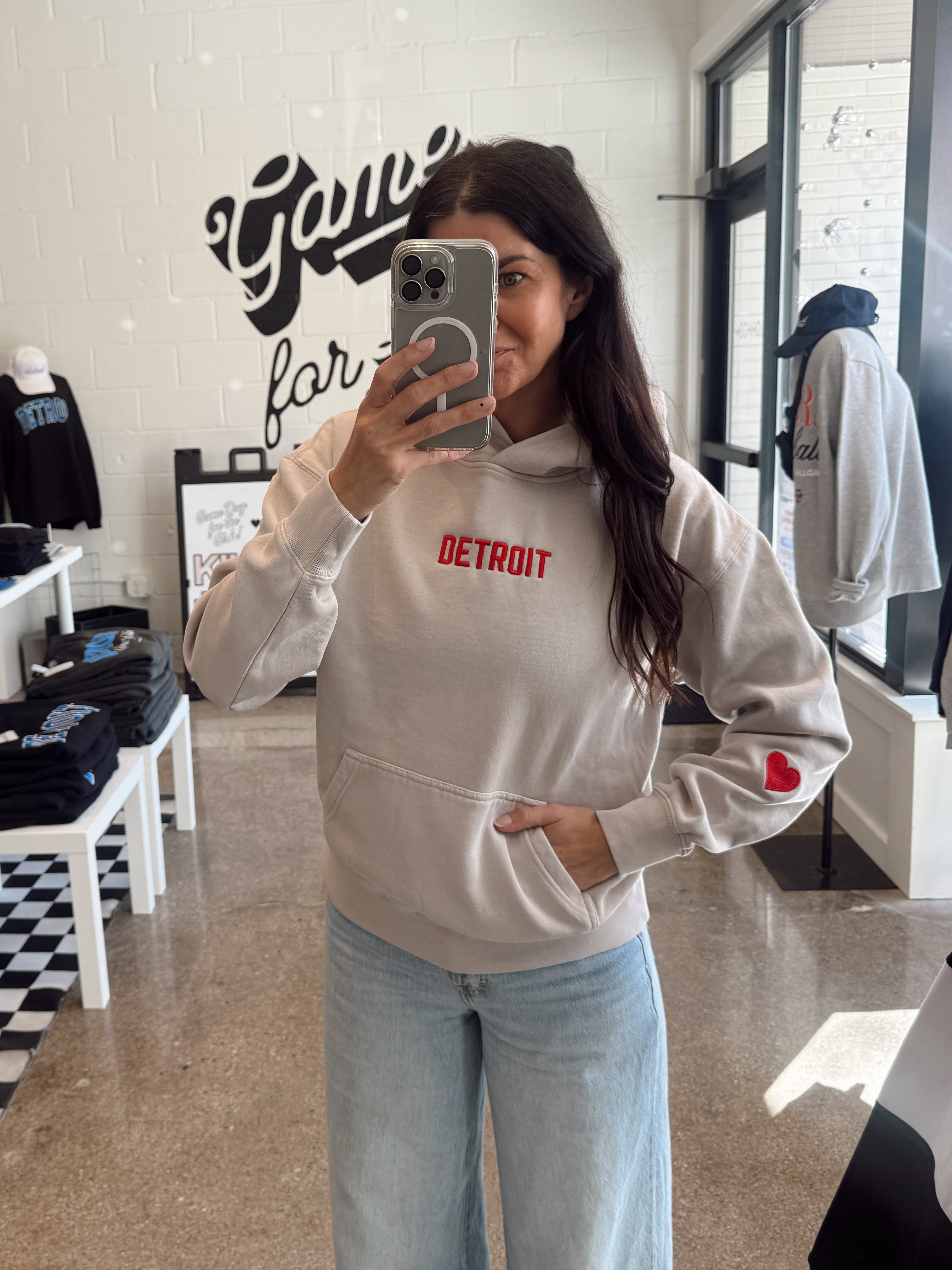 Detroit Embroidered Faded Bone Womens Relaxed Hoodie