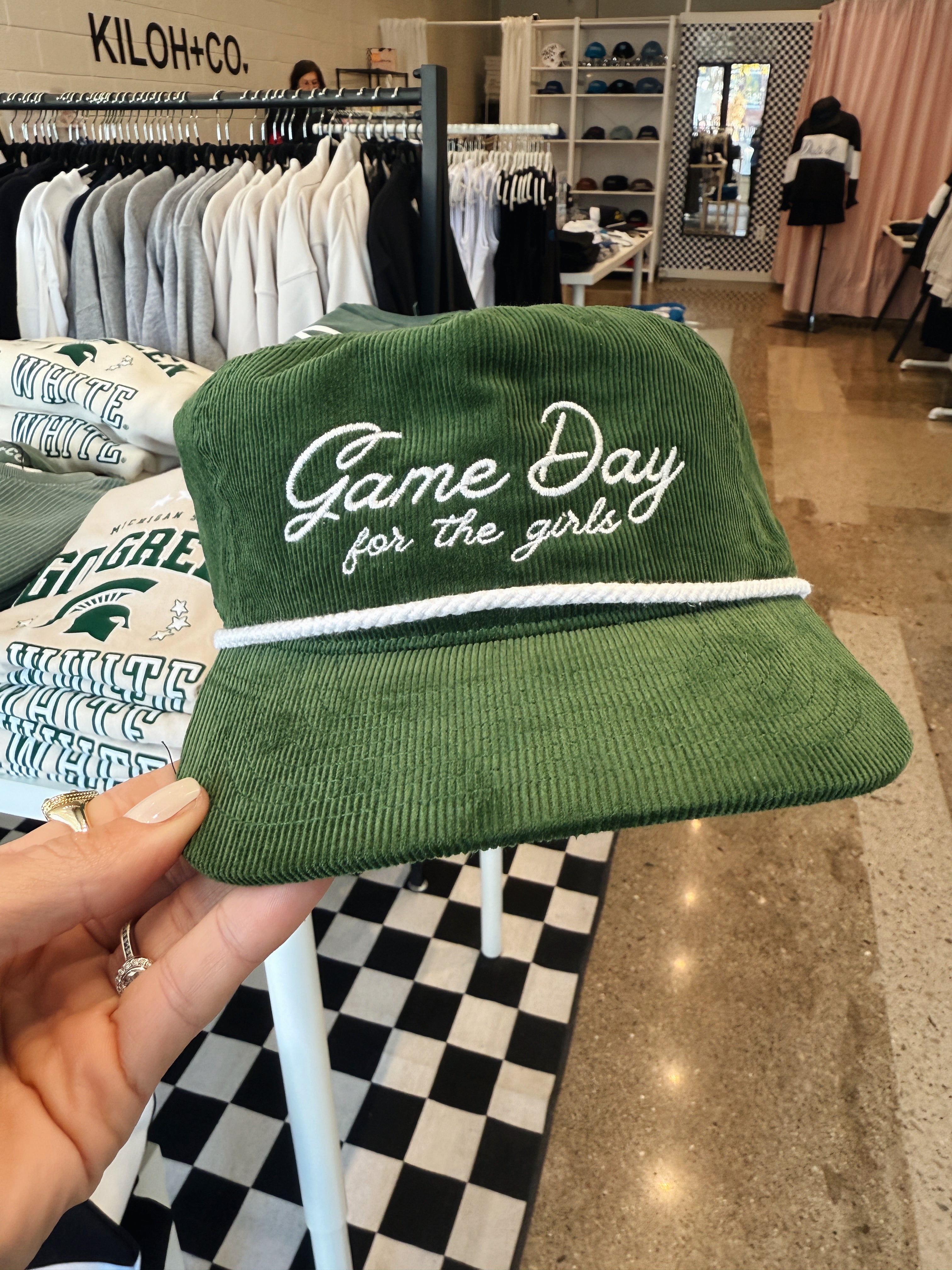 Green Game Day for the Girls Corduroy Embroidered Hat