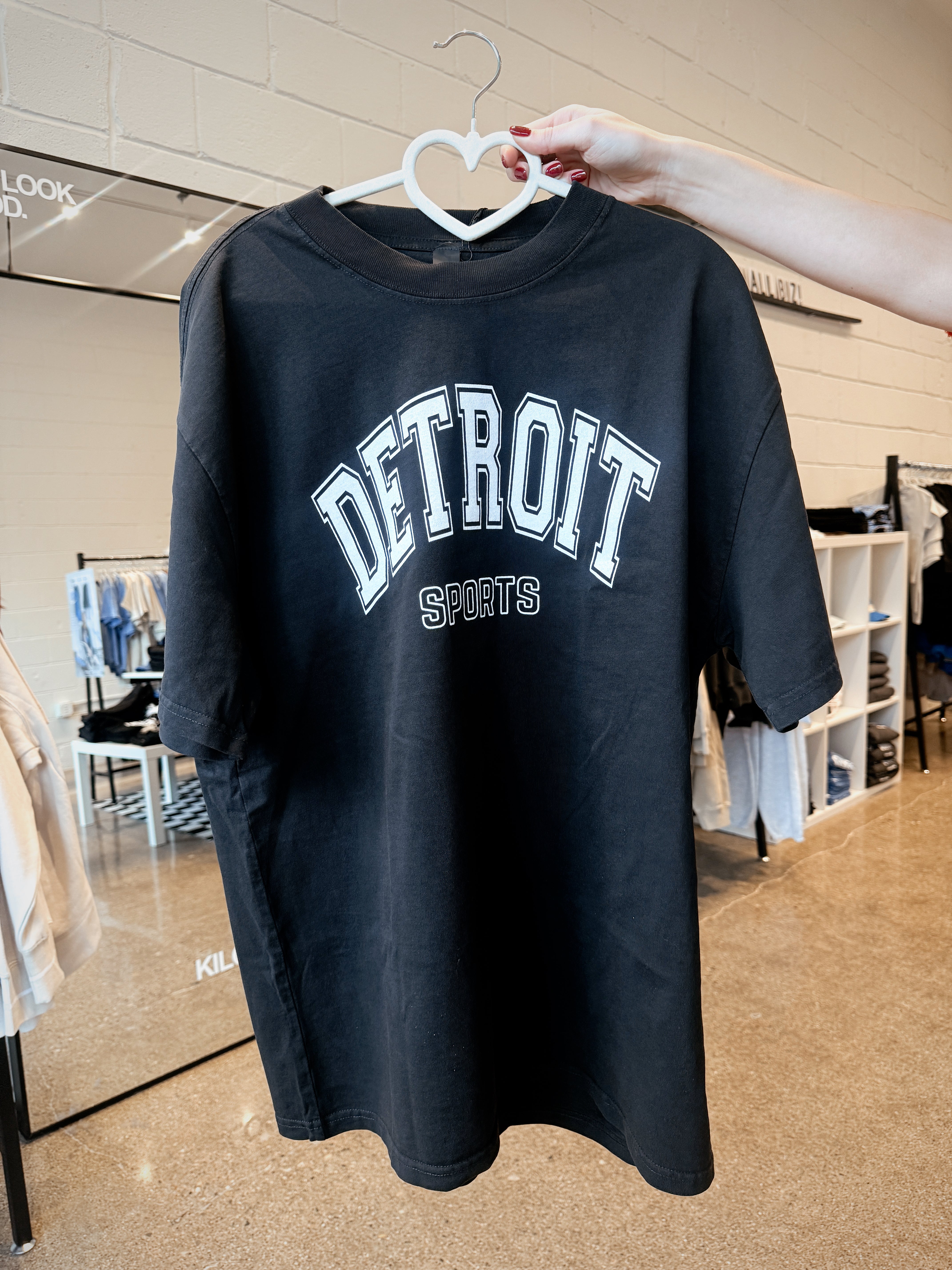 We LOVE this as a neutral moment or pair back to your FAVORITE Teams colors for Game Day! The PERFECT Tee to add to your wardobe! An oversized fit with Detroit Sports white graphic is great matched back to leggings, denim or joggers! VINTAGE FADED BLACK — not true solid black