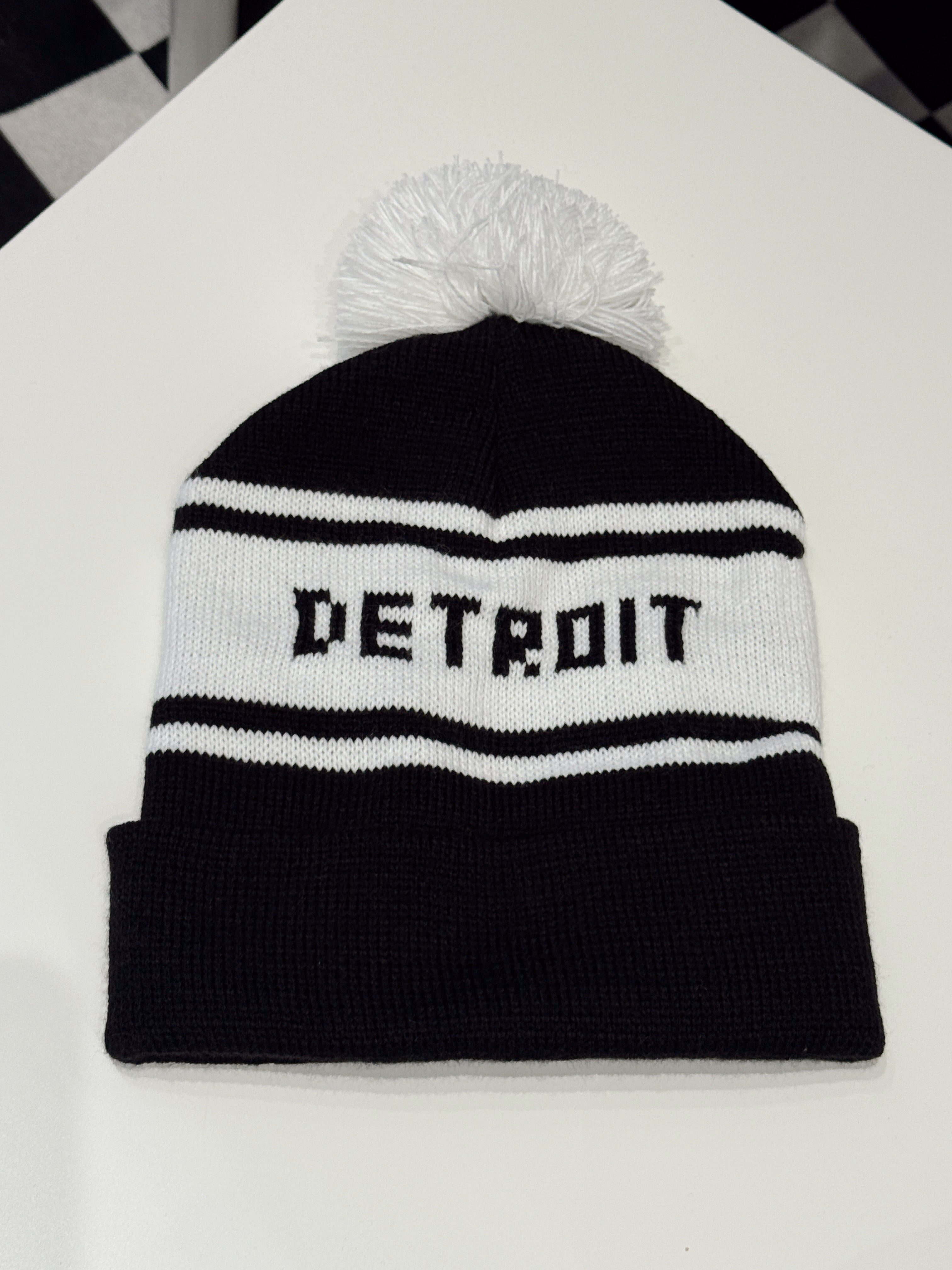 Cozy up with this knitted Black + White Detroit winter hat! Perfect for your favorite sports games or staying warm in the frigid Michigan winters! The perfect gift for the Detroit lover!