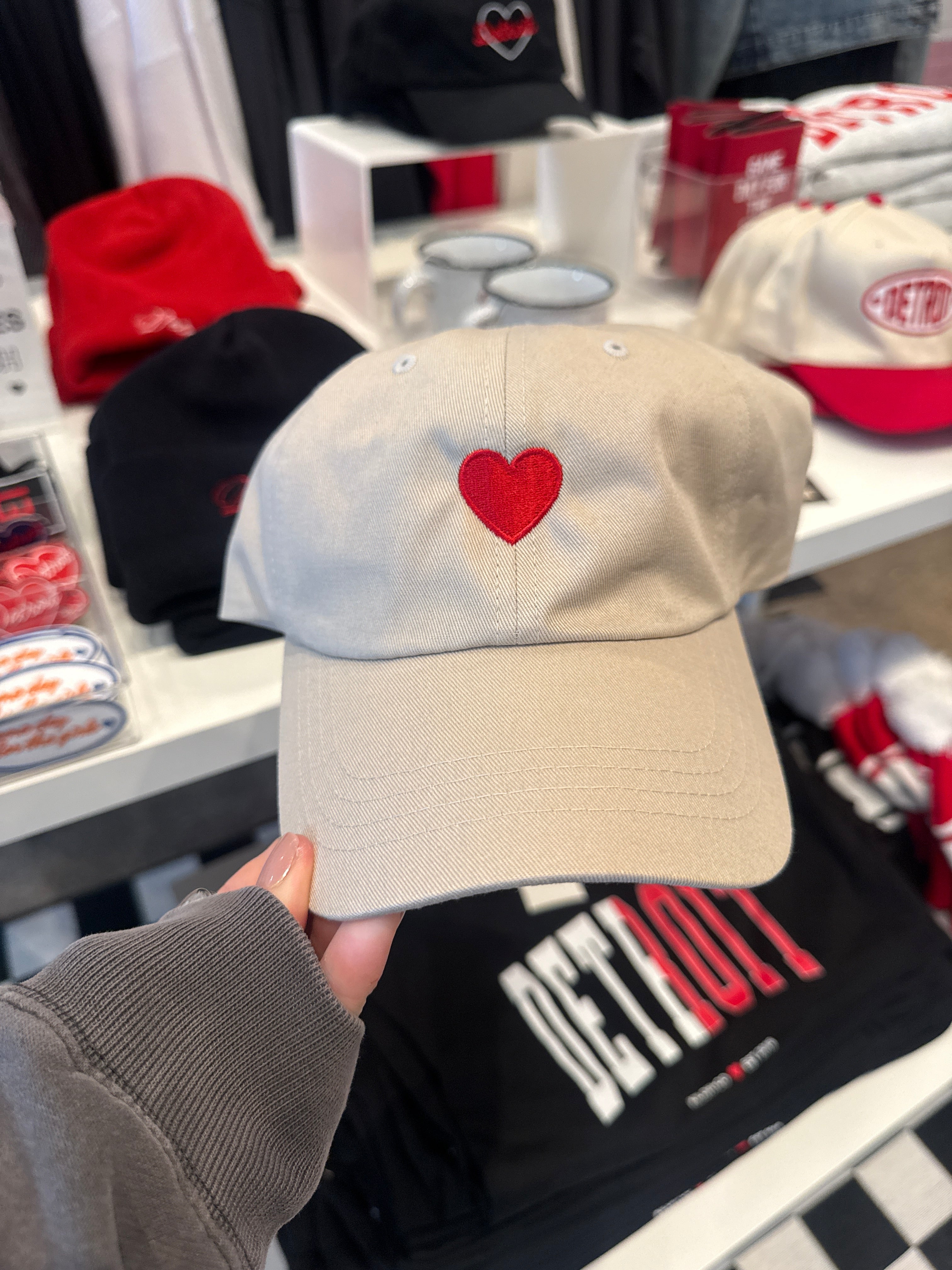 Game Day Embroidered Ivory + Red Heart Hat