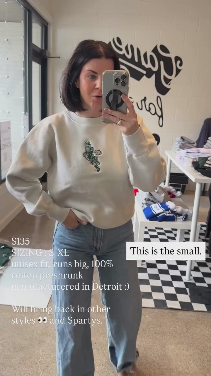 The PERFECT Crew for any Michigan Fan + Perfect for Basketball SZN! Our Vintage Wash sweatshirt is a Customer FAVORITE, splurge-worthy item for your Game Day Wardrobe! Our NEWEST Collegiate Crew in Bone with an EMBROIDERED Block M on the front and Hail to the Victors EMBROIDERED on the sleeve. Styling options are endless!