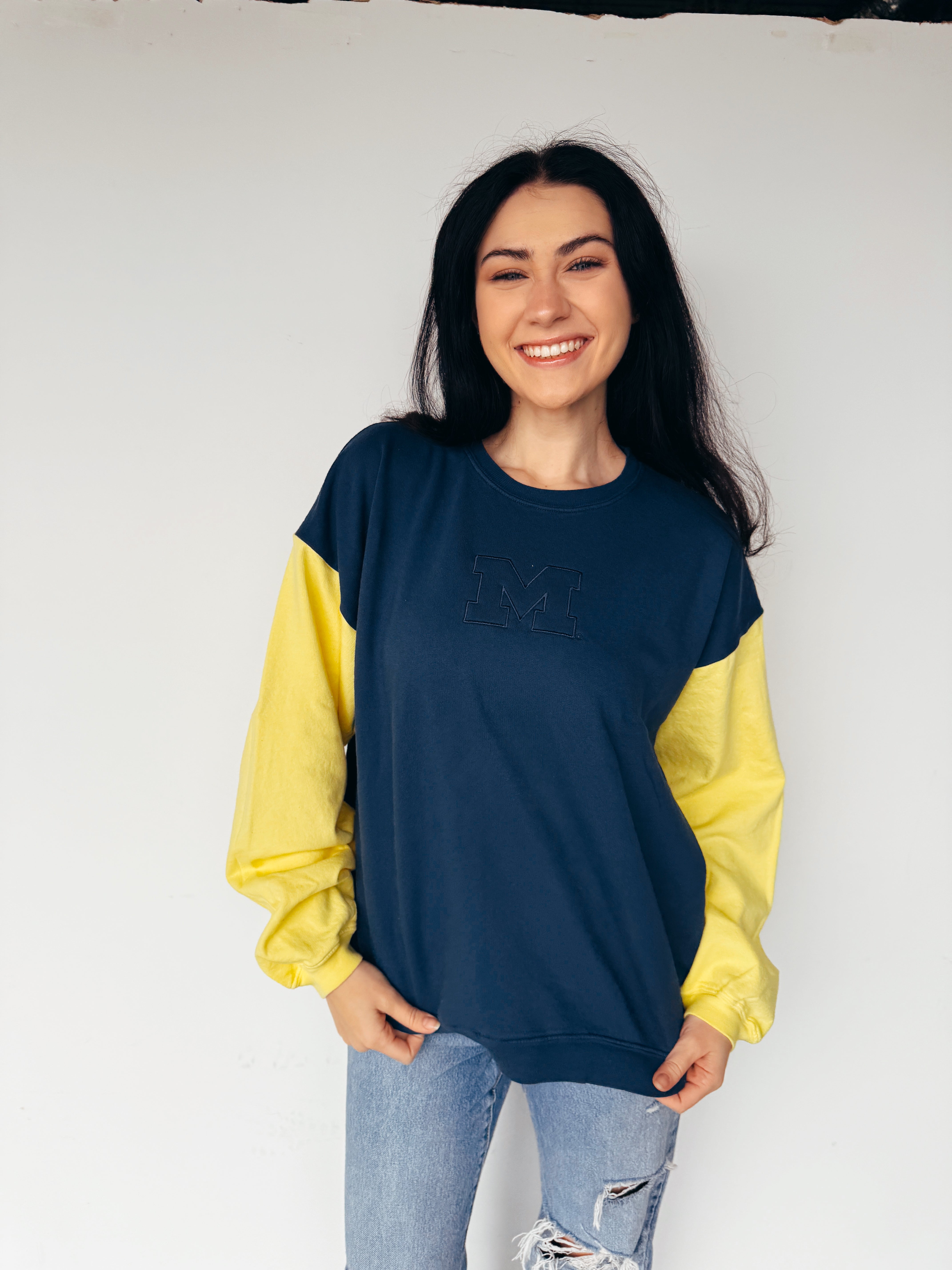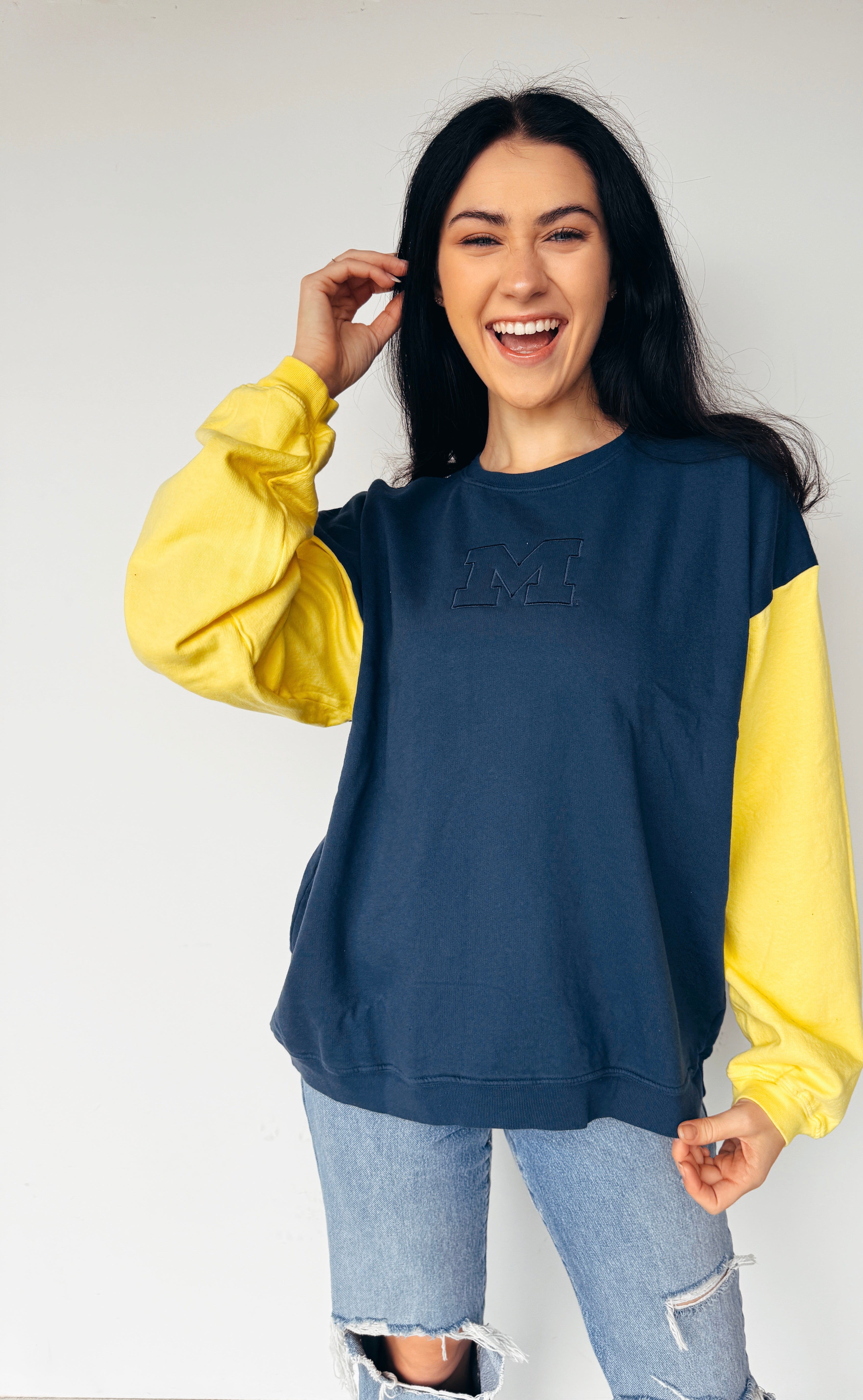 Block M Maize + Blue Two-Tone Licensed Boyfriend Crew