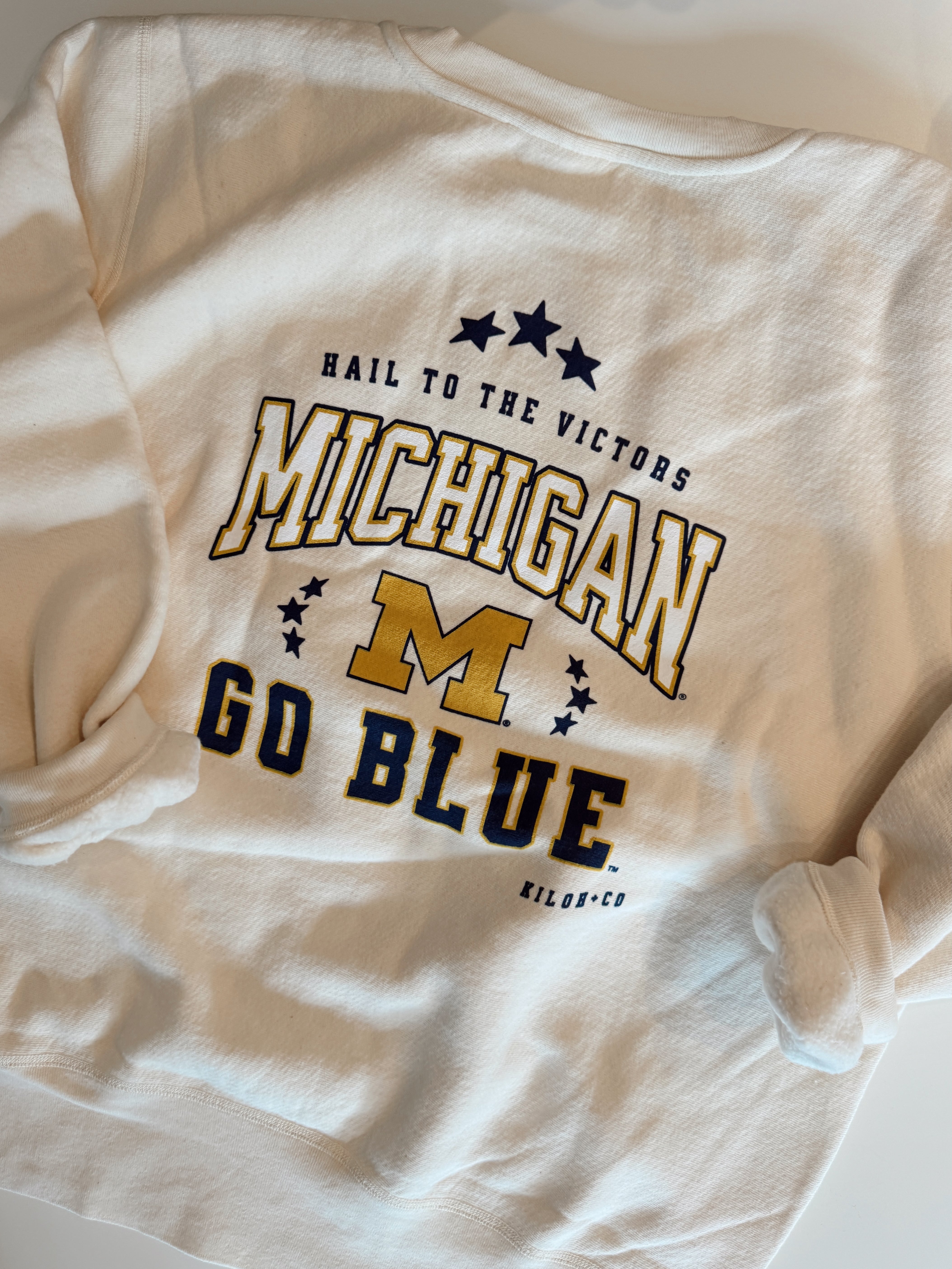 Let's Go Blue Michigan Licensed Signature Oversized Striped Crew