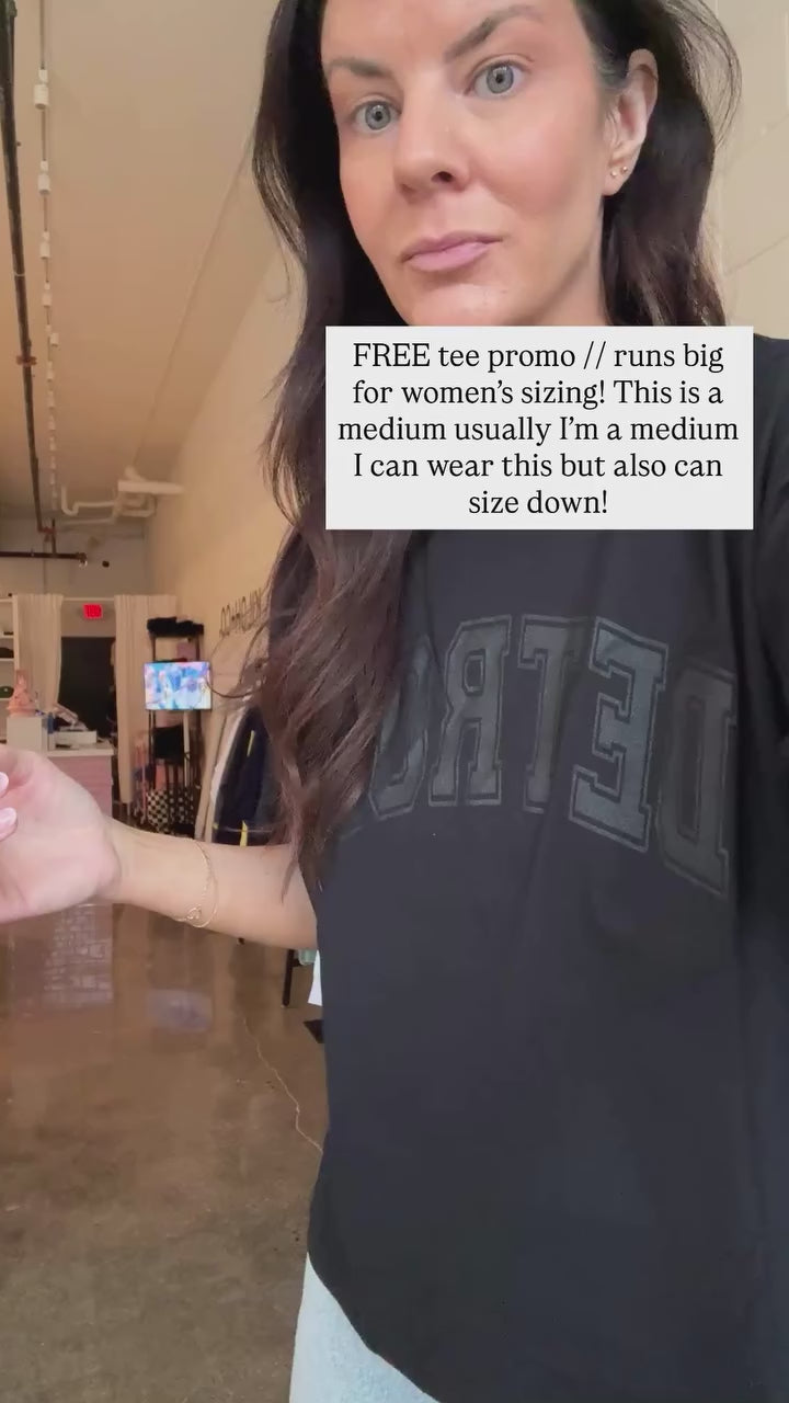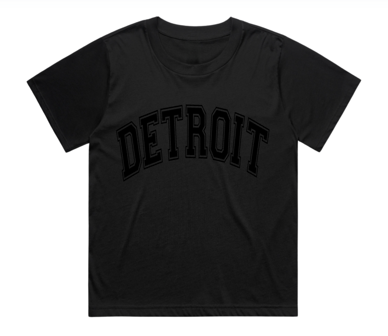 Our black on black Detroit tee is back! This one is a women's oversized fit!