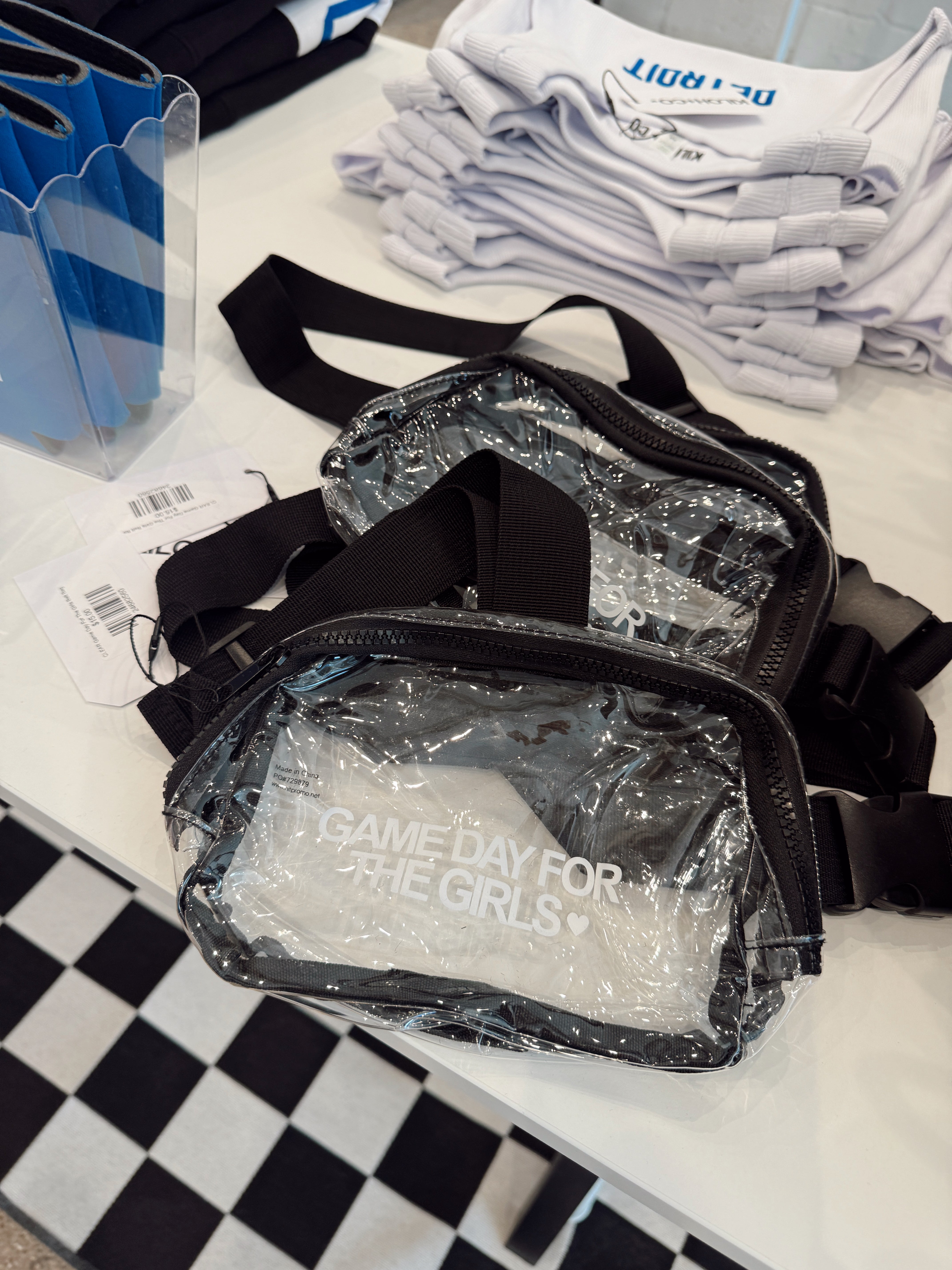 This clear and black belt bag is PERFECT for game day! ONLY good for certain stadiums!