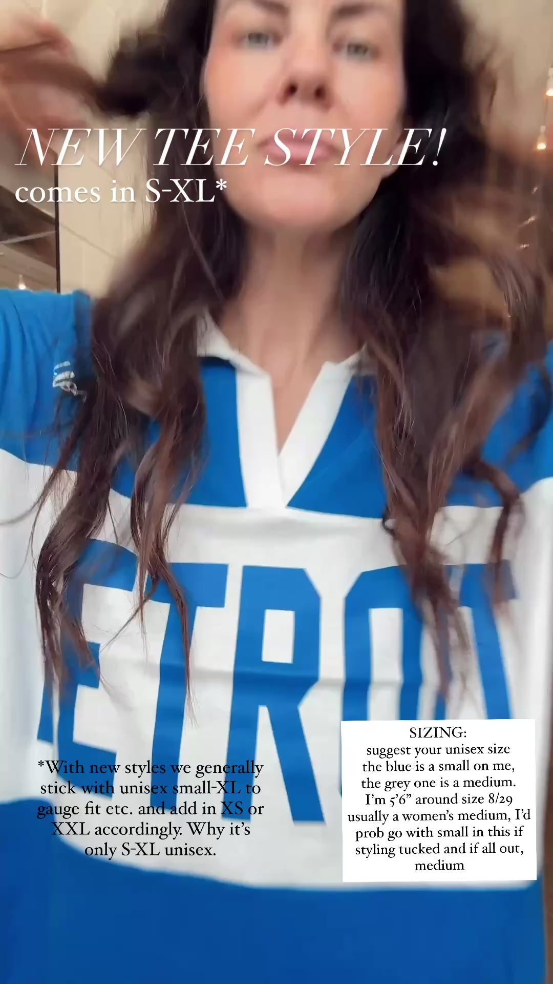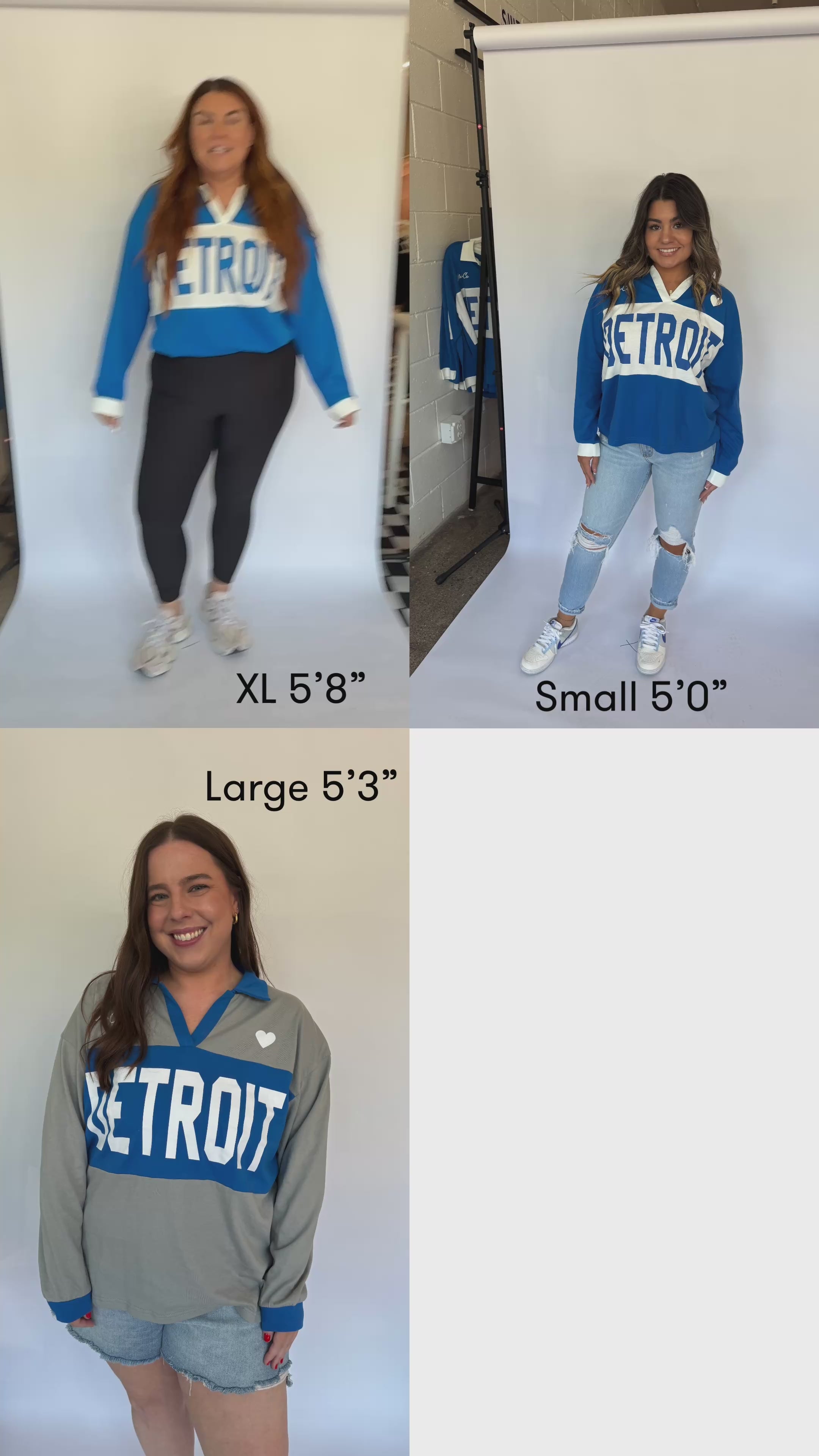 The NEWEST Style to be added to your closet for Game Day is this CUSTOM Long Sleeve Rugby Tee! Elevate your Game Day Style in this fun and totally on trend Detroit rugby shirt! It's blue has a off-white collar + center stripe across the chest with our iconic upper case DETROIT in blue. The white in middle is a softer off-white/ivory. We are OBSESSED with this new style and all the styling options! A must-have for your Game Day Collection!