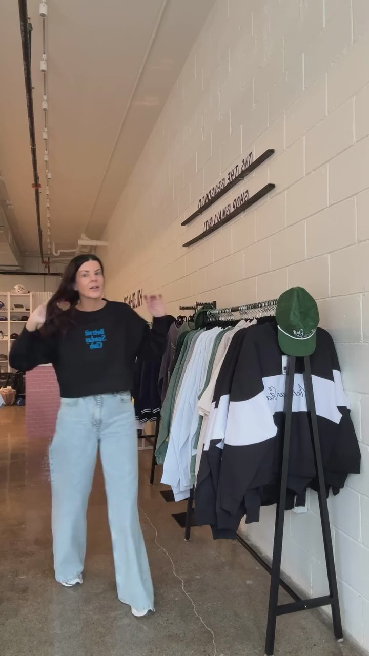 This Embroidered Detroit Sunday Club Crew is a must have! This black CROPPED crew with blue embroidery is perfect for your cozy Sundays! We LOVE this crew matched back to our black joggers or fleece shorts!